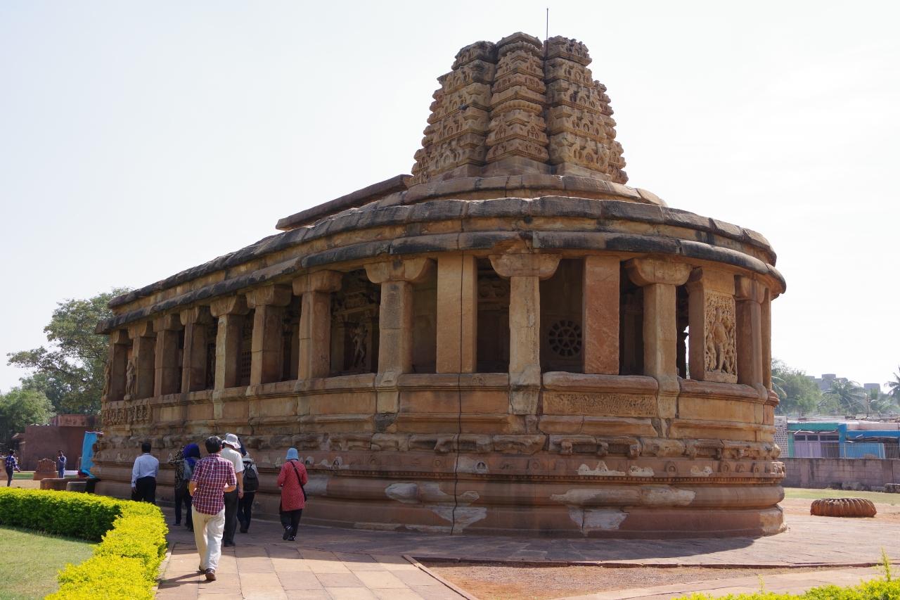 8時にホテルを出発して、一路アイホーレへ。アイホーレまでは2時間半から3時間。その間、ヒマワリ畑に立ち寄ったり、小さな村の郵便局で地元の人たちに記念撮影をせがまれたり。楽しい道中を過ごしながら、到着したのは、4~6世紀にチャールキヤ王朝が最初に都を置いたアイホーレ。寺院群を代表するドゥルガー寺院を訪れます。