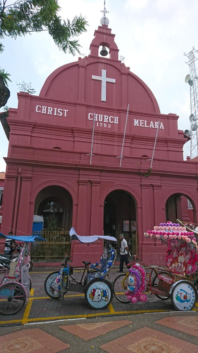 18世紀、オランダ統治時代に建てられたキリスト教会を中心に時計台、スタダイスとピンクの建物が並ぶマラッカ観光のメイン