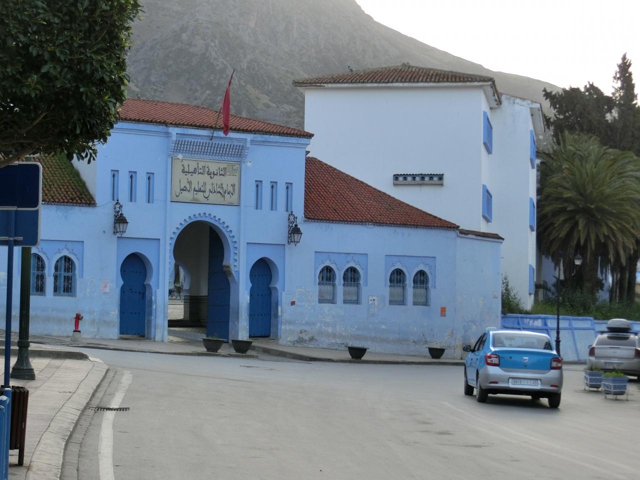大型バスは旧市街には入れないので、こちらで下車。建物にモロッコの旗が掲げてあるから学校か役所などの公共施設かな?
