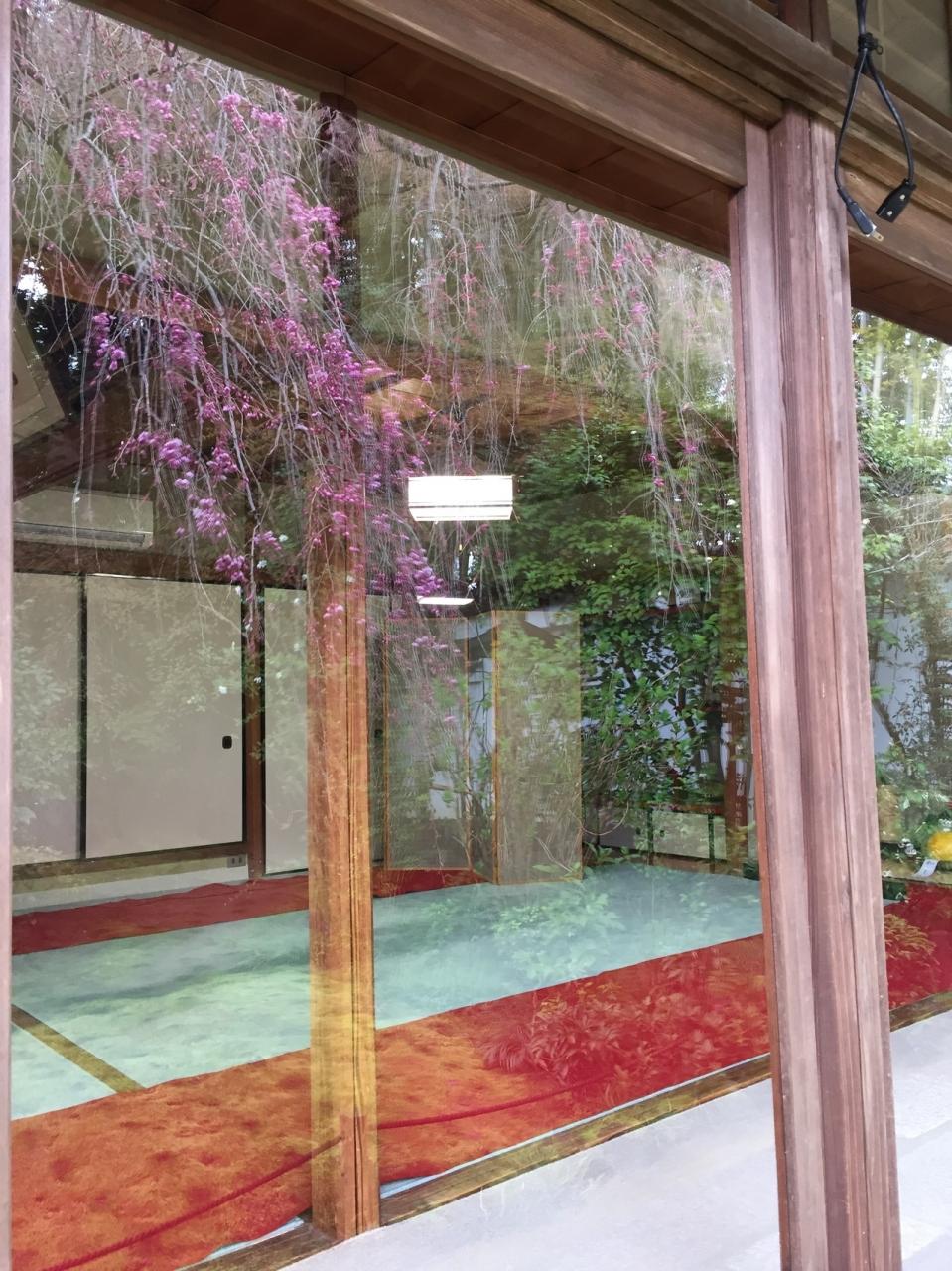 約50年前、「余香苑」の完成時に植えられた退蔵院の紅枝垂れ桜は、平安神宮の孫桜にあたる木で、2013年にJR東海「そうだ京都、行こう。」キャンペーンにも使用されたそうです。