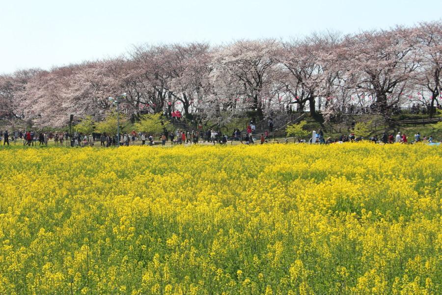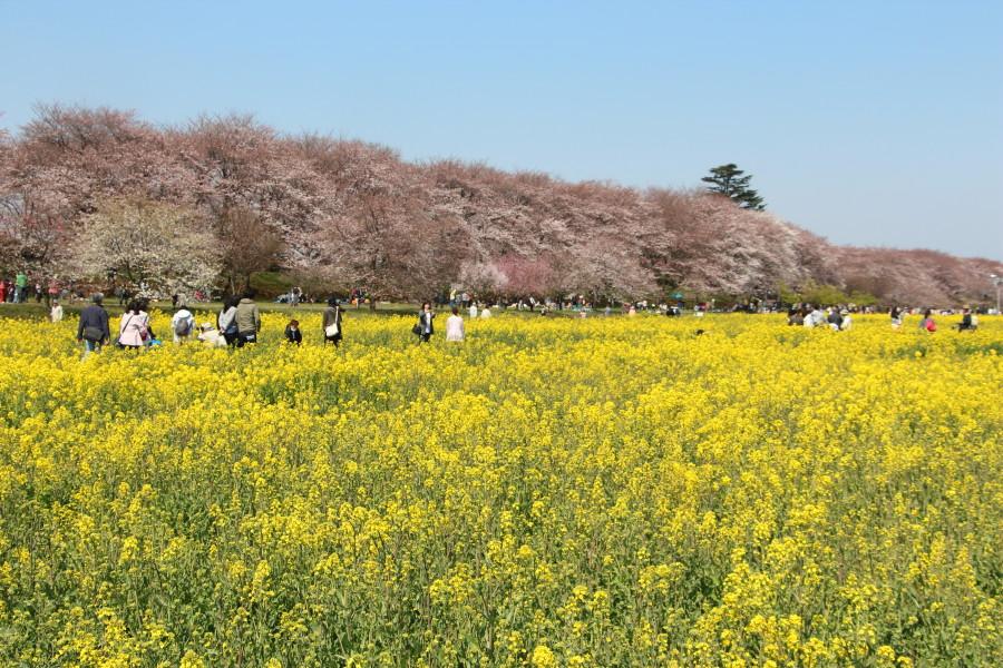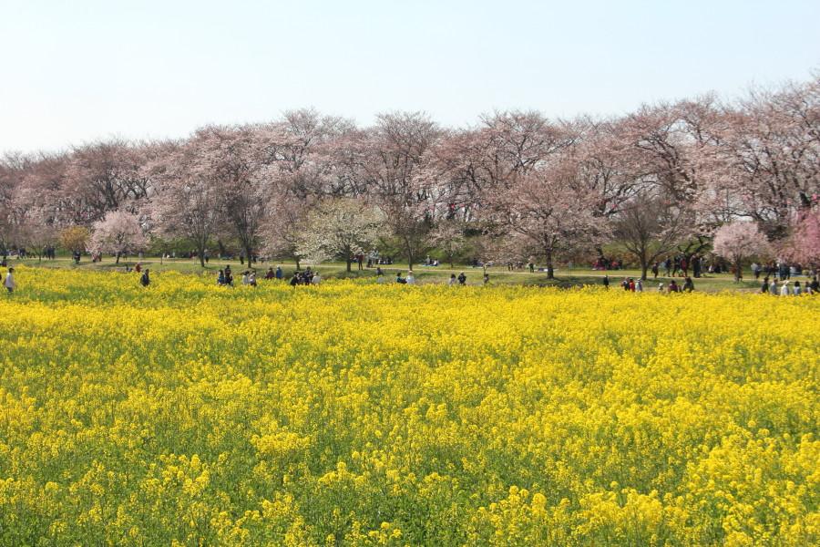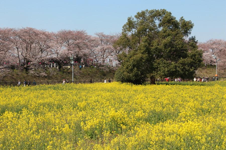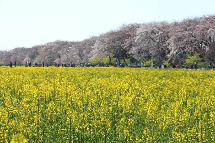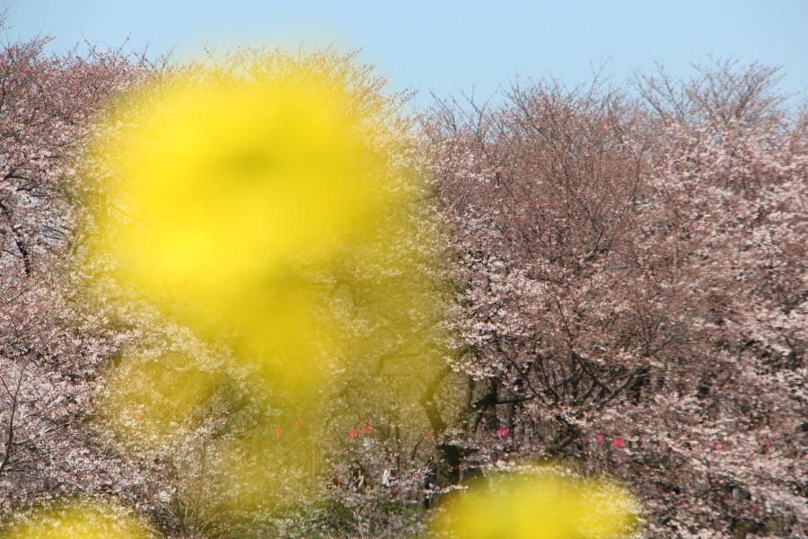 菜の花畑の先の桜は8部咲き程度になているようでした。!(^^)!