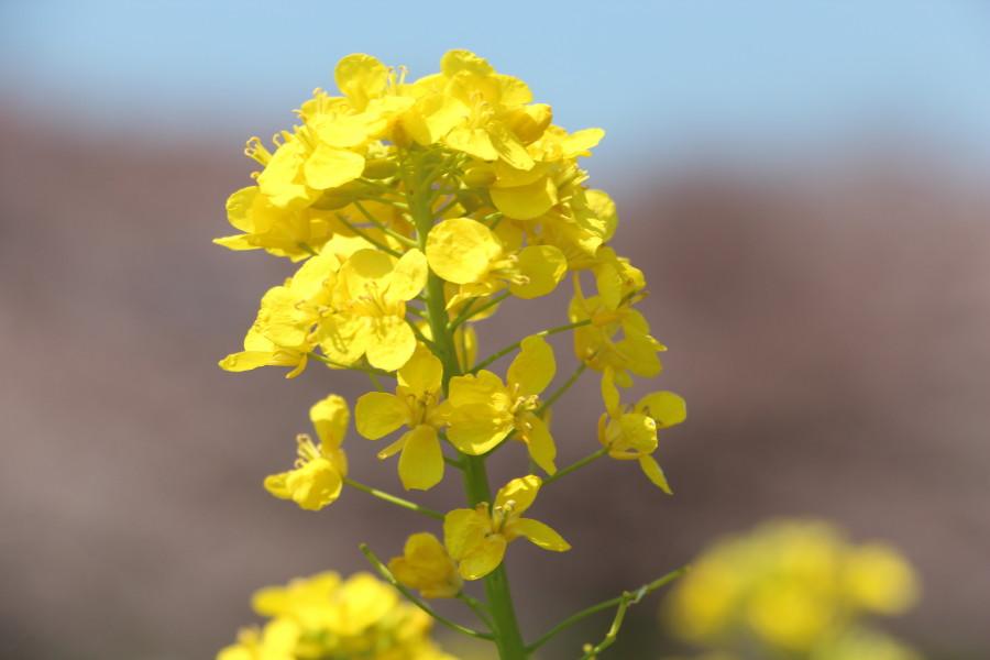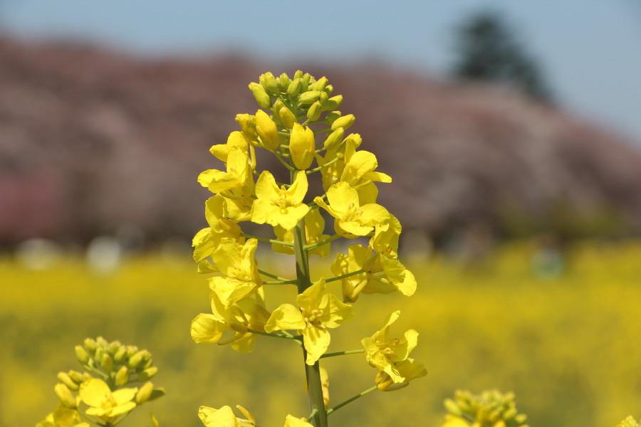 菜の花を前ボケに