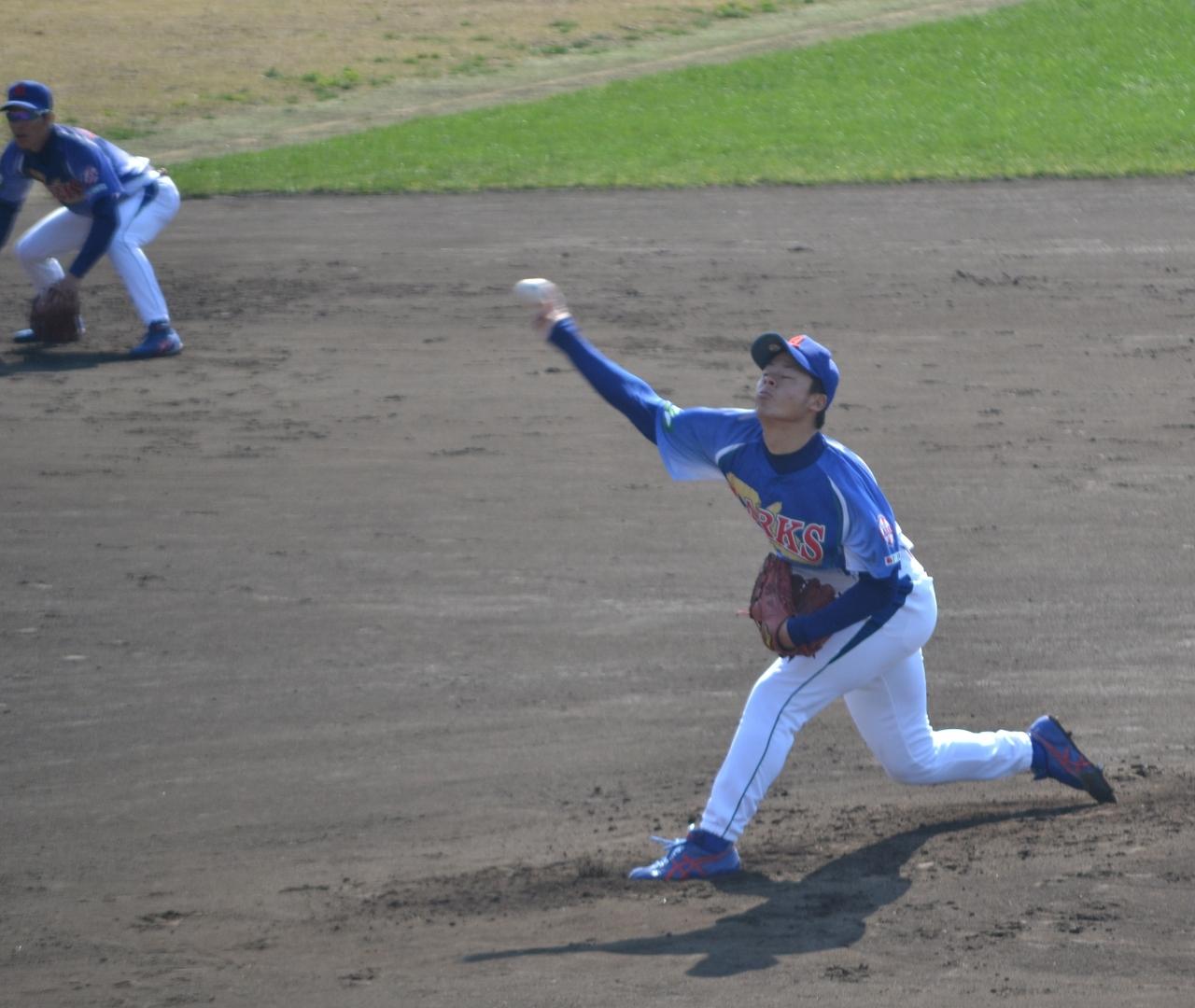鮮ど市場ゴールデンラークスの先発は、松尾勇太投手でした。米子西高校~山梨学院大学出身です。 -