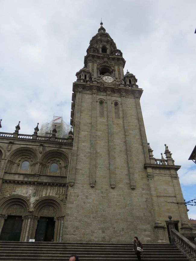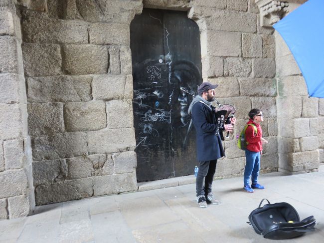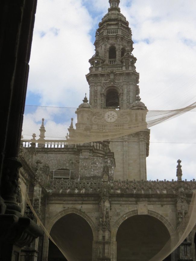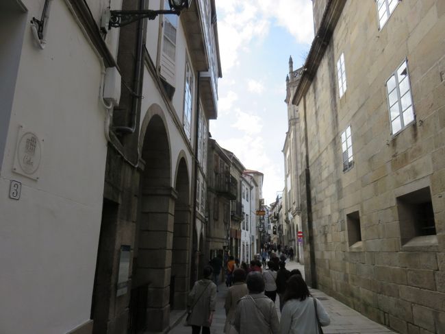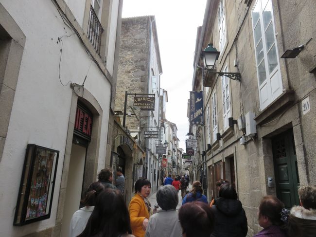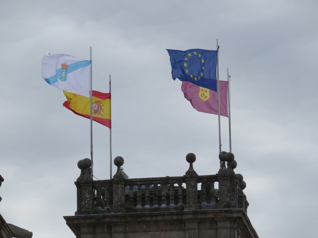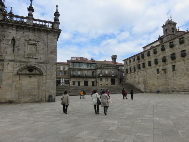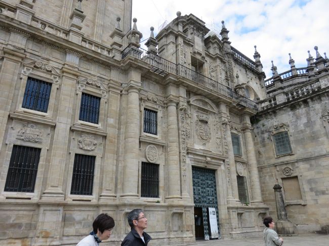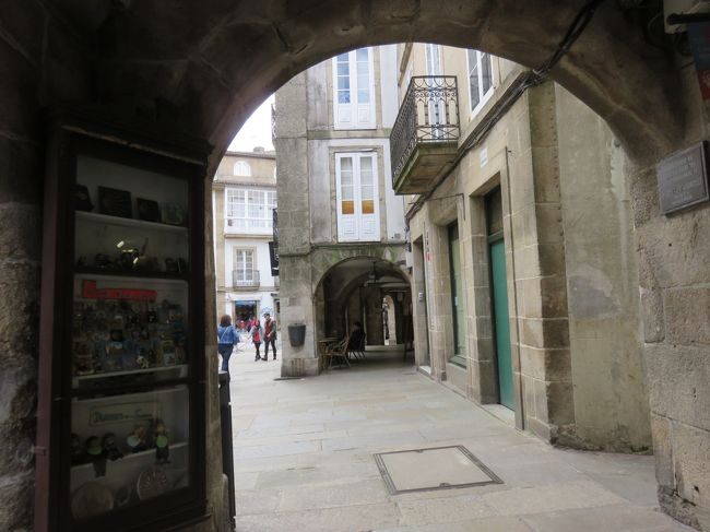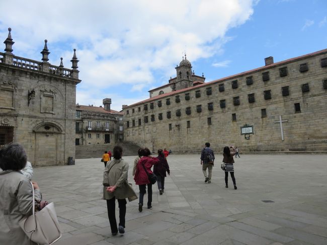 4日目 国境を超えて、サンティアゴ・デ・コンポステーラへ。モンテ・ゴソよりカテドラルを遠目にみて、旧市街地にあるレストランで名物の昼食「ホタテ貝のメニュー」を取り、記念にホタテの貝殻を貰う。カテドラルを見学し、旧市街地の散策。徒歩で来た巡礼者に通過した町のスタンプや修了証明書を見せてもらった。警察署横の公衆便所に立ち寄り、集合場所で待つと雨が降り出した。帰りのバスは雨の中。ポルトのホテルに到着。夕食は、ホテルの隣のモールのフードコートで焼うどんもどきを食べる。