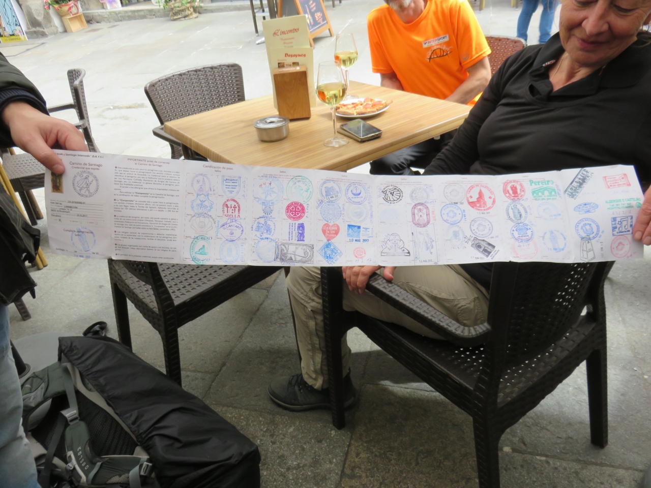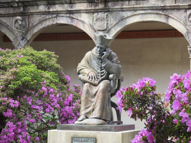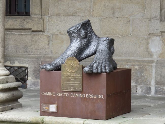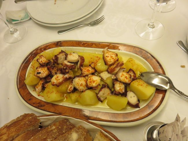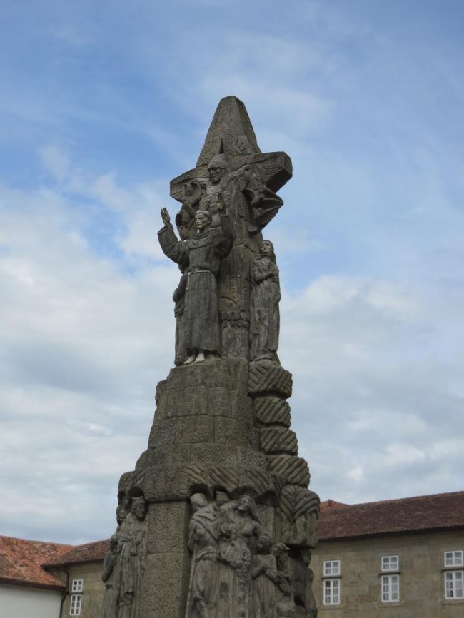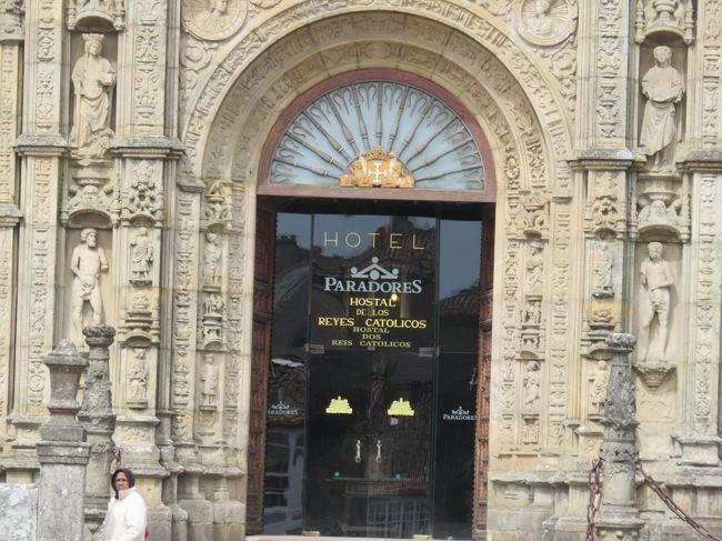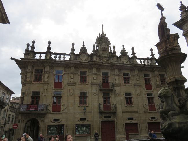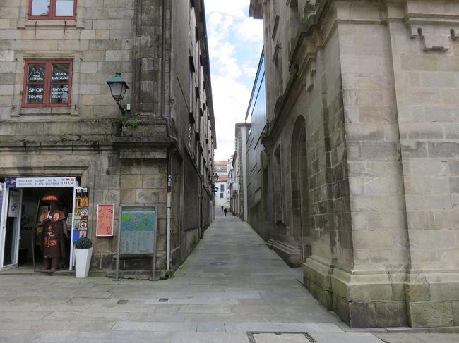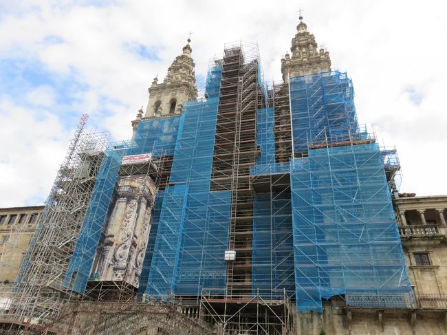 4日目 国境を超えて、サンティアゴ・デ・コンポステーラへ。モンテ・ゴソよりカテドラルを遠目にみて、旧市街地にあるレストランで名物の昼食「ホタテ貝のメニュー」を取り、記念にホタテの貝殻を貰う。カテドラルを見学し、旧市街地の散策。徒歩で来た巡礼者に通過した町のスタンプや修了証明書を見せてもらった。警察署横の公衆便所に立ち寄り、集合場所で待つと雨が降り出した。帰りのバスは雨の中。ポルトのホテルに到着。夕食は、ホテルの隣のモールのフードコートで焼うどんもどきを食べる。