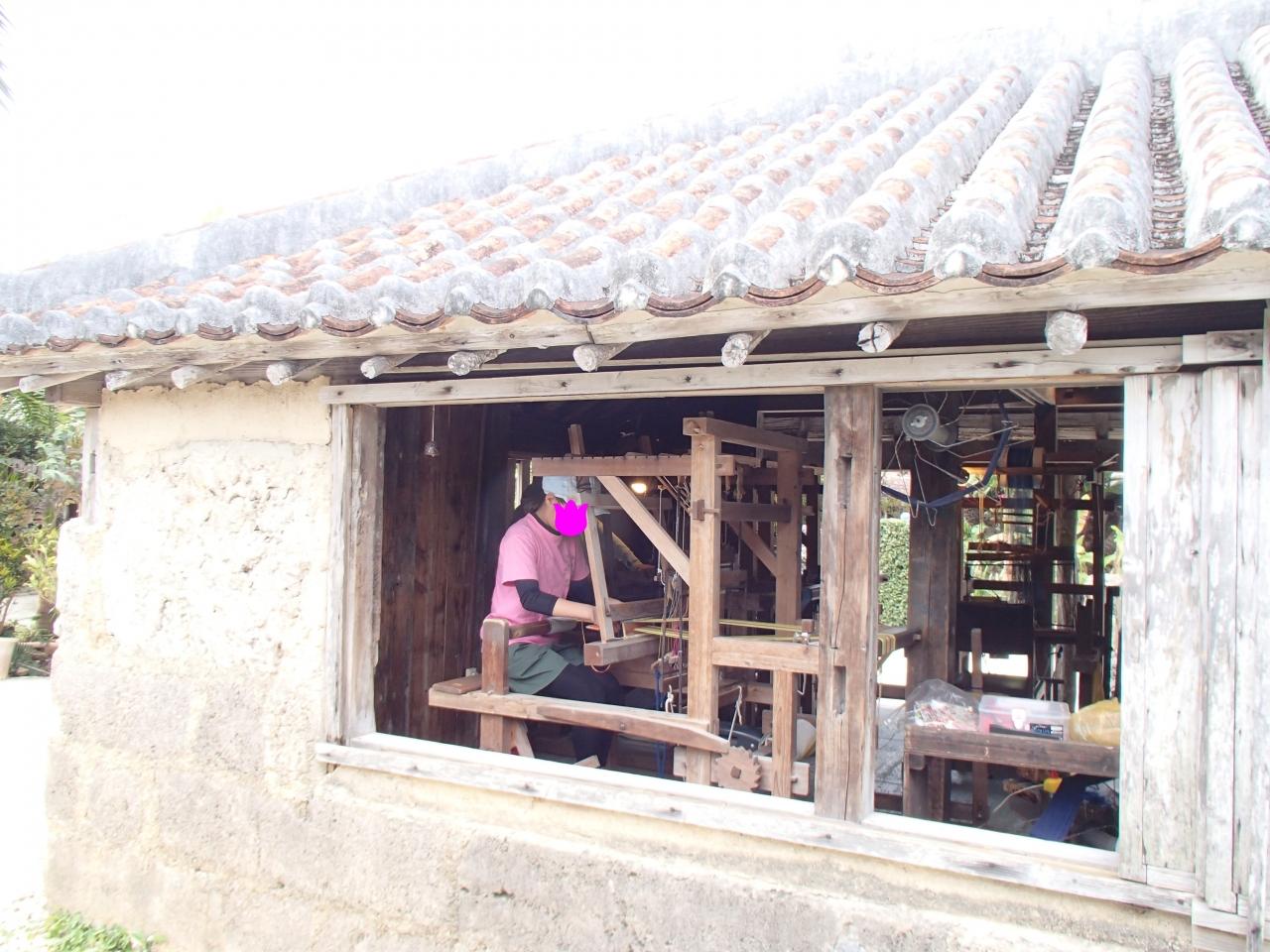 私たちは左の建物で紅型染め体験、右の建物で機織り体験をしました。 -