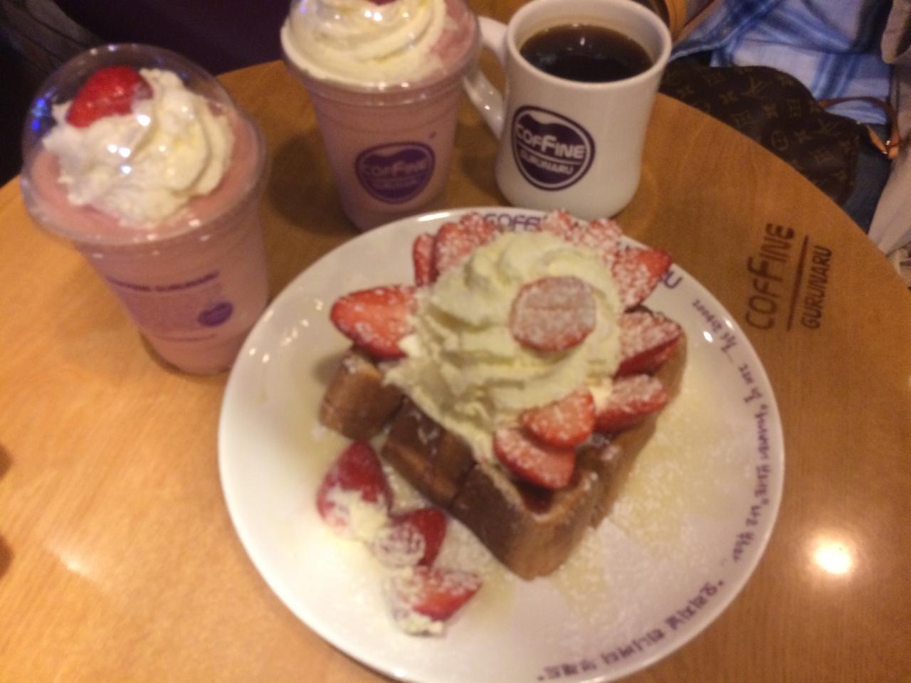 スムージー2つにイチゴトースト。