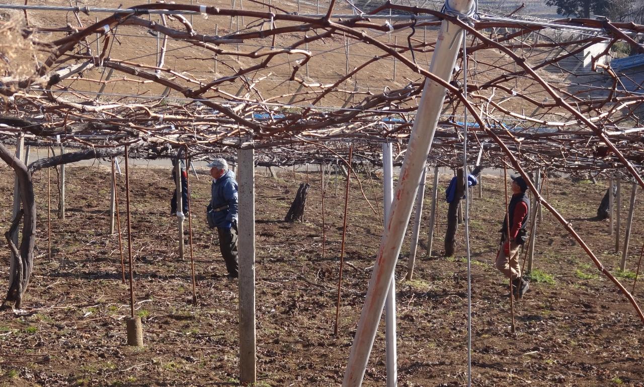 ブドウ畑では剪定作業が始ったようで、農家の方々が大胆に枝を詰めていきます。