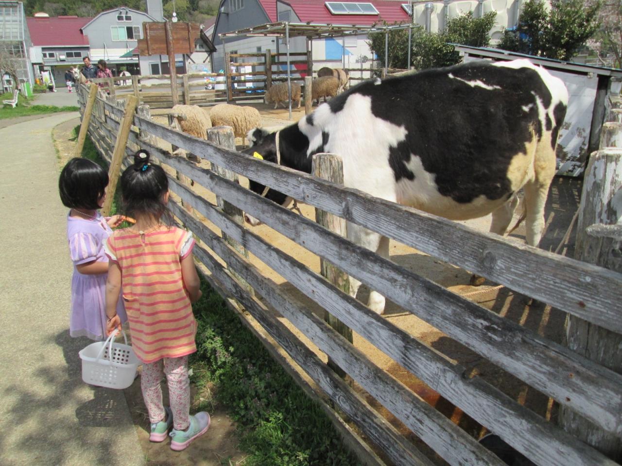 上の孫娘は、係の方の手ほどきで上手に「乳しぼり」が出来ました。
