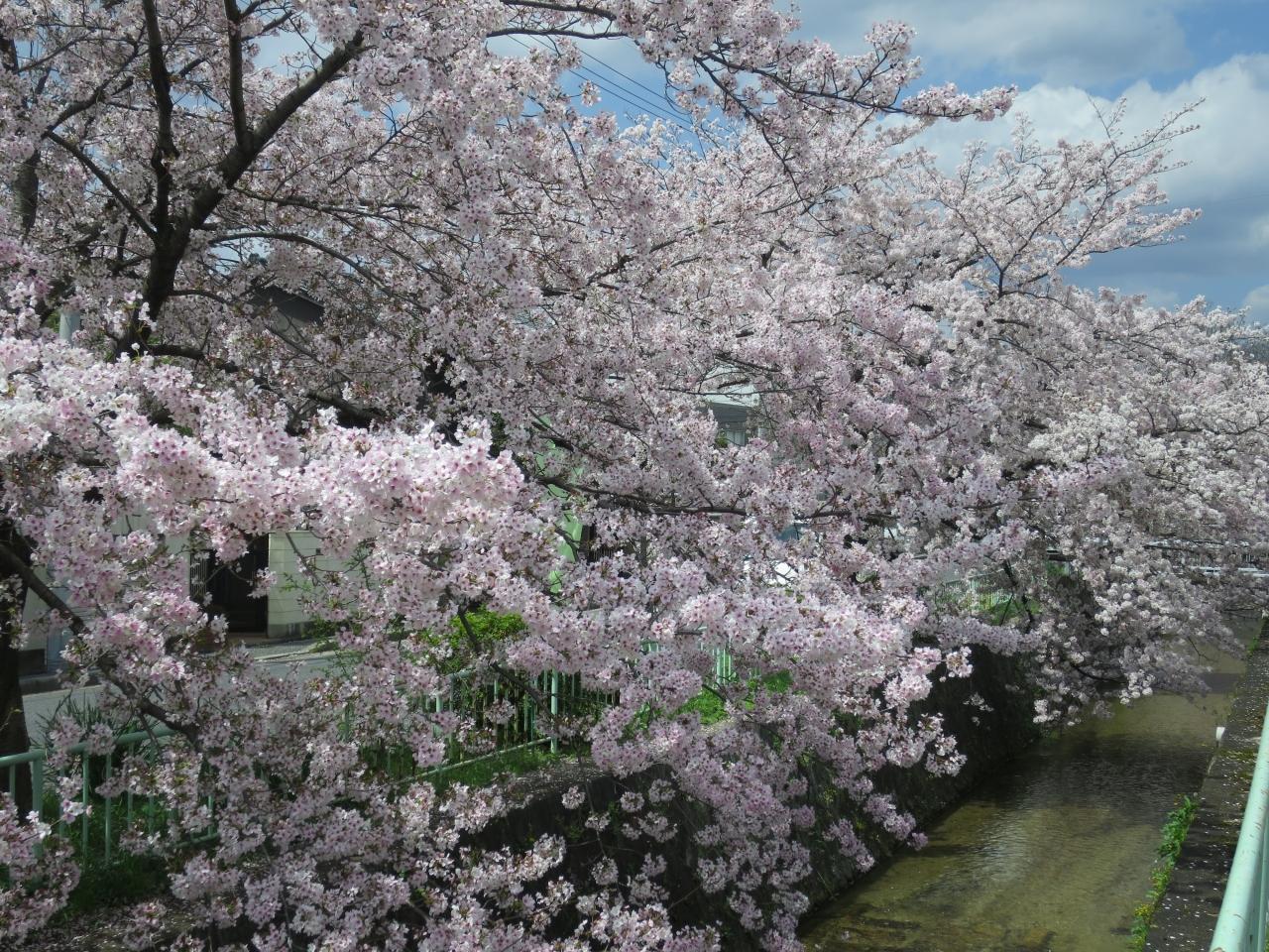 京大農学部の農場とグラウンドの横を通りしばらく北に歩くと”白河疏水”に出ます。隠れた桜の名所です。