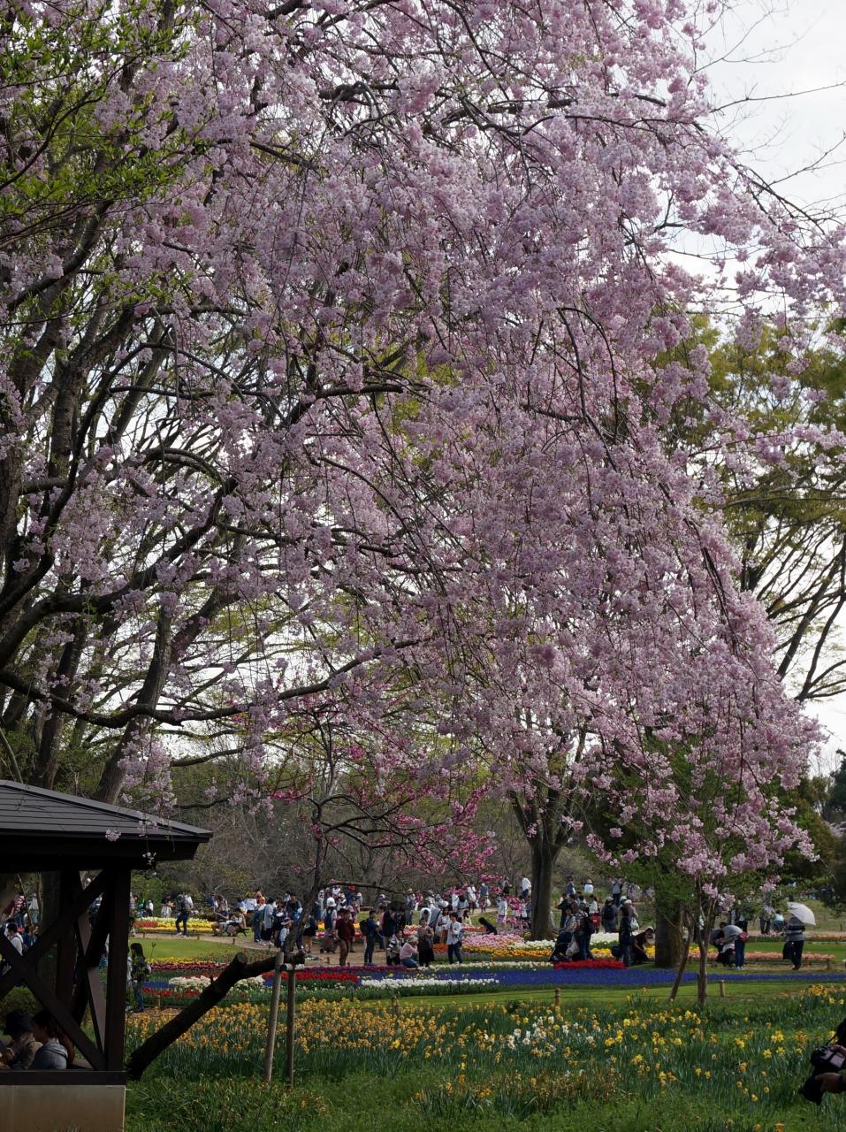 従い花の有る場所、桜とチュウリップに人が集まります、写真を写すにも人の入らない写真なんて望むべくもありません。