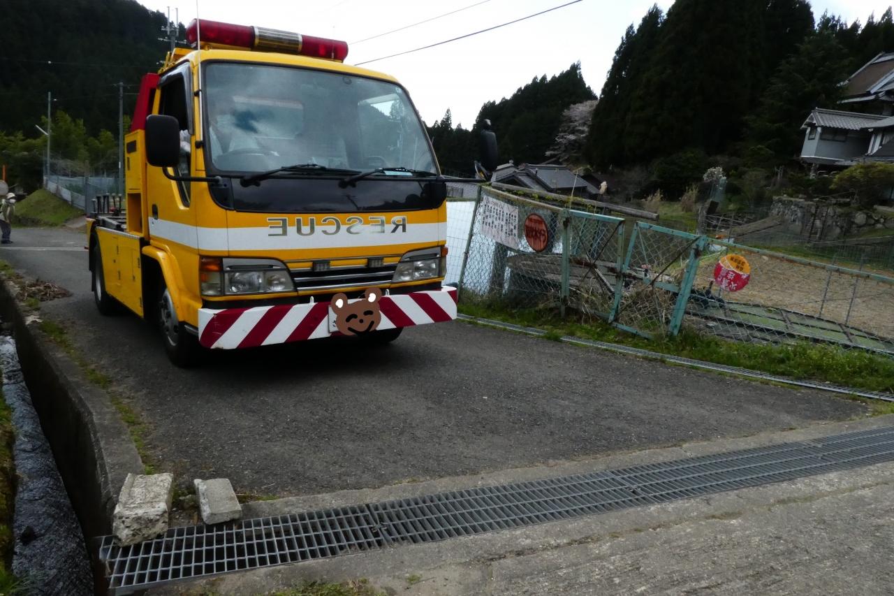 ここ、道が狭いのです。レスキューが到着してからも車が数台通過しようとするため、作業開始まで時間がかかってました。 -