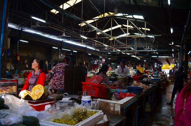 魚介類も売っているので、市場の中は色々な匂いが充満(>_<)