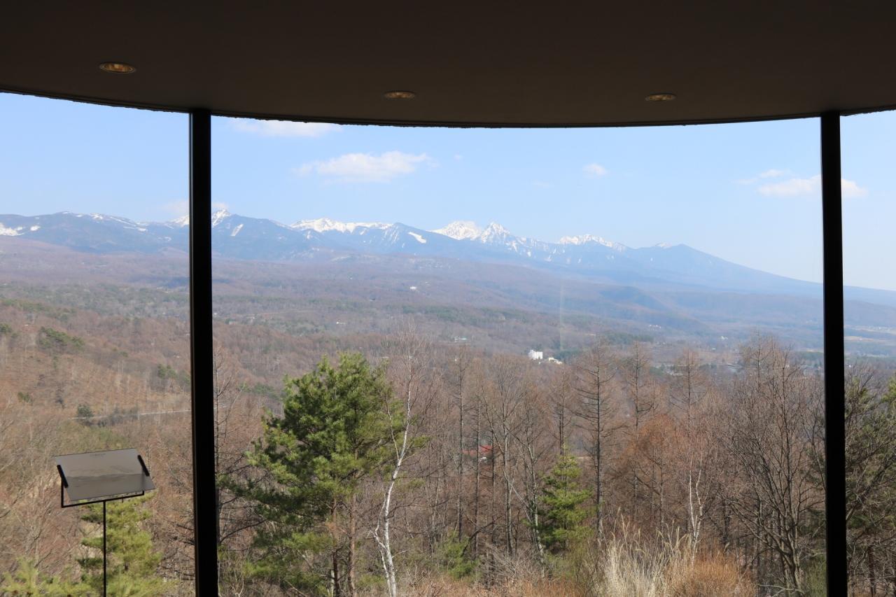 ロビーの展望台から八ヶ岳、南アルプスが見える。