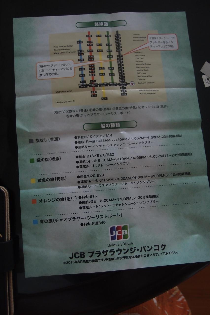 JCBプラザラウンジでもらったチャオプラヤーボートの種類や