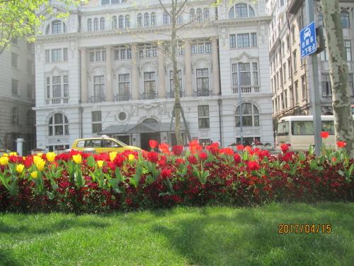 上海の春の外灘・英国租界・花で囲まれる・2017年