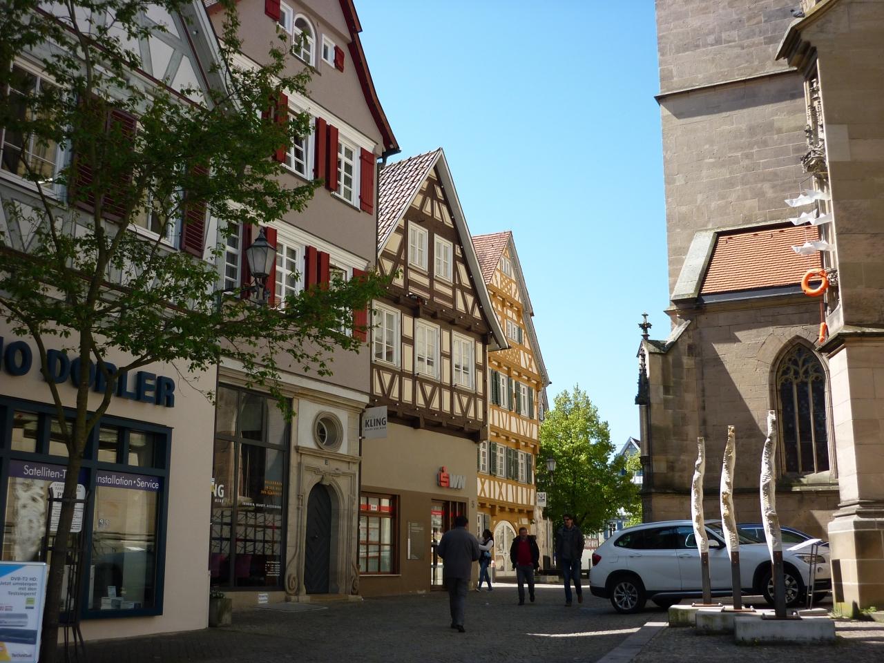 ○ショルンドルフはシュツットガルトからREで20分の小さな町、歴史的木組み建築の旧市街が素晴らしい