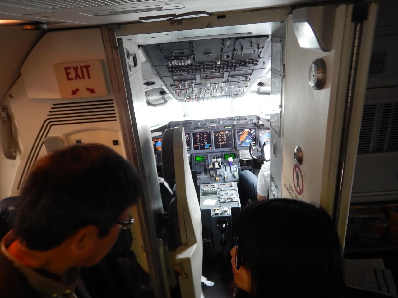 コナ便に搭乗すると小型機でドアが開いていたのでコクピットが丸見えです。