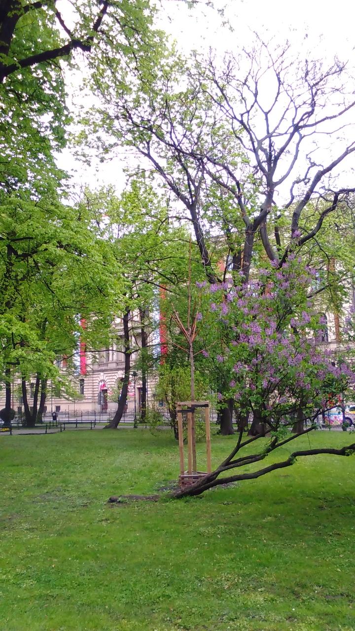 この日は雨こそ降りませんでしたが、ずっと薄曇りであまり暖かくはありませんでした。公園ではリラが満開でした。
