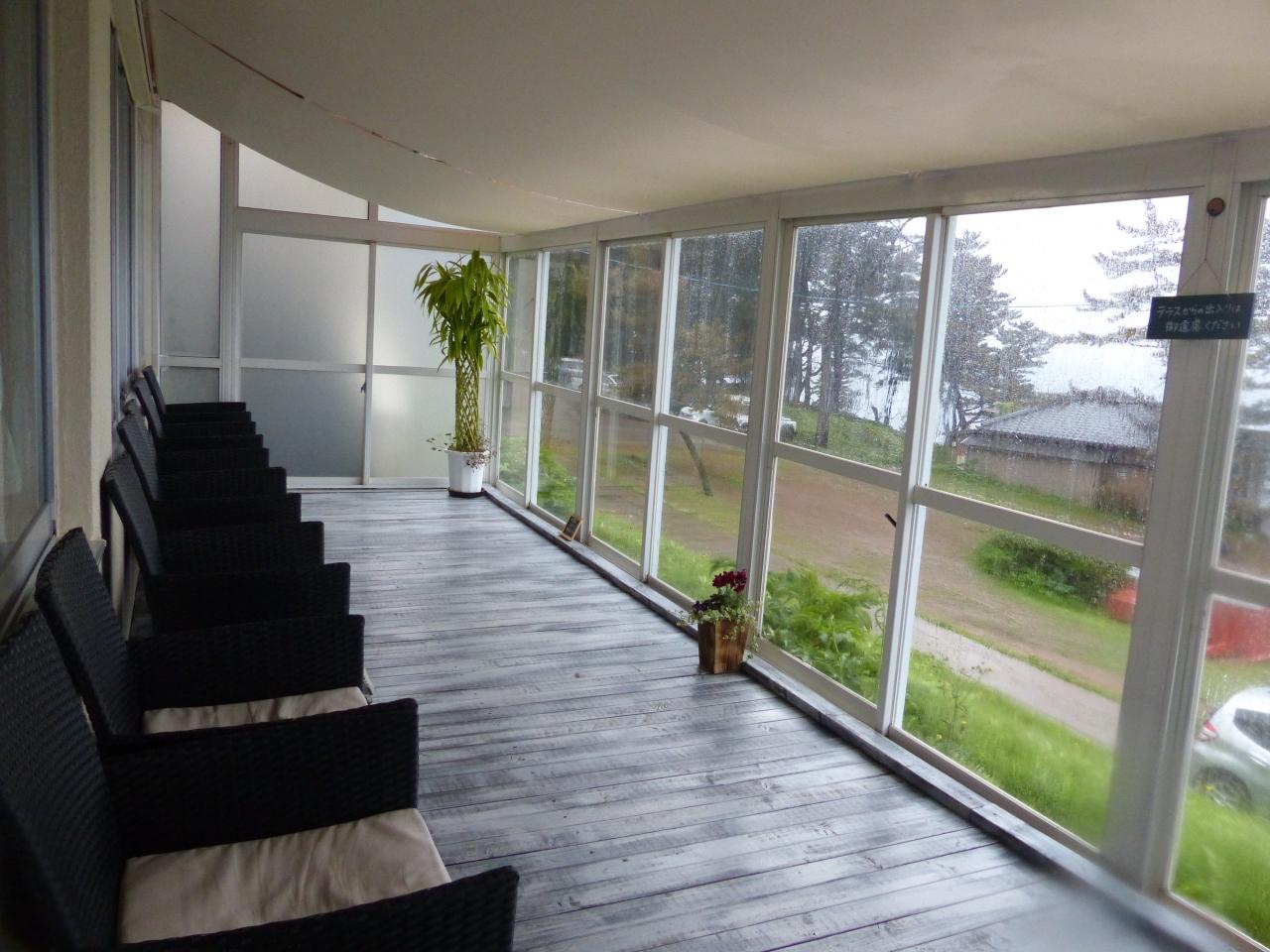 私もここに座って景色を眺めながらゆったりとしたかったのですが、なにせ外は嵐のような豪雨&猛風。