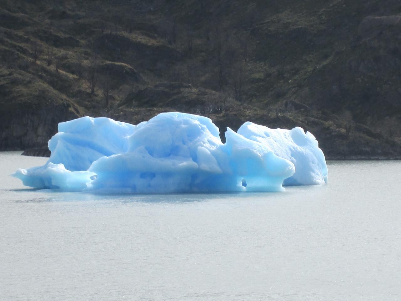 グレイ湖畔のトレッキングコースを歩いてグレイ氷河が見える展望台まで行きました、氷河と湖上を航行する遊覧船を見て元の駐車場に戻り、食事をするため近くにあるホテルのラゴグレイに、ここで湖畔を眺めながら昼食を取りました。