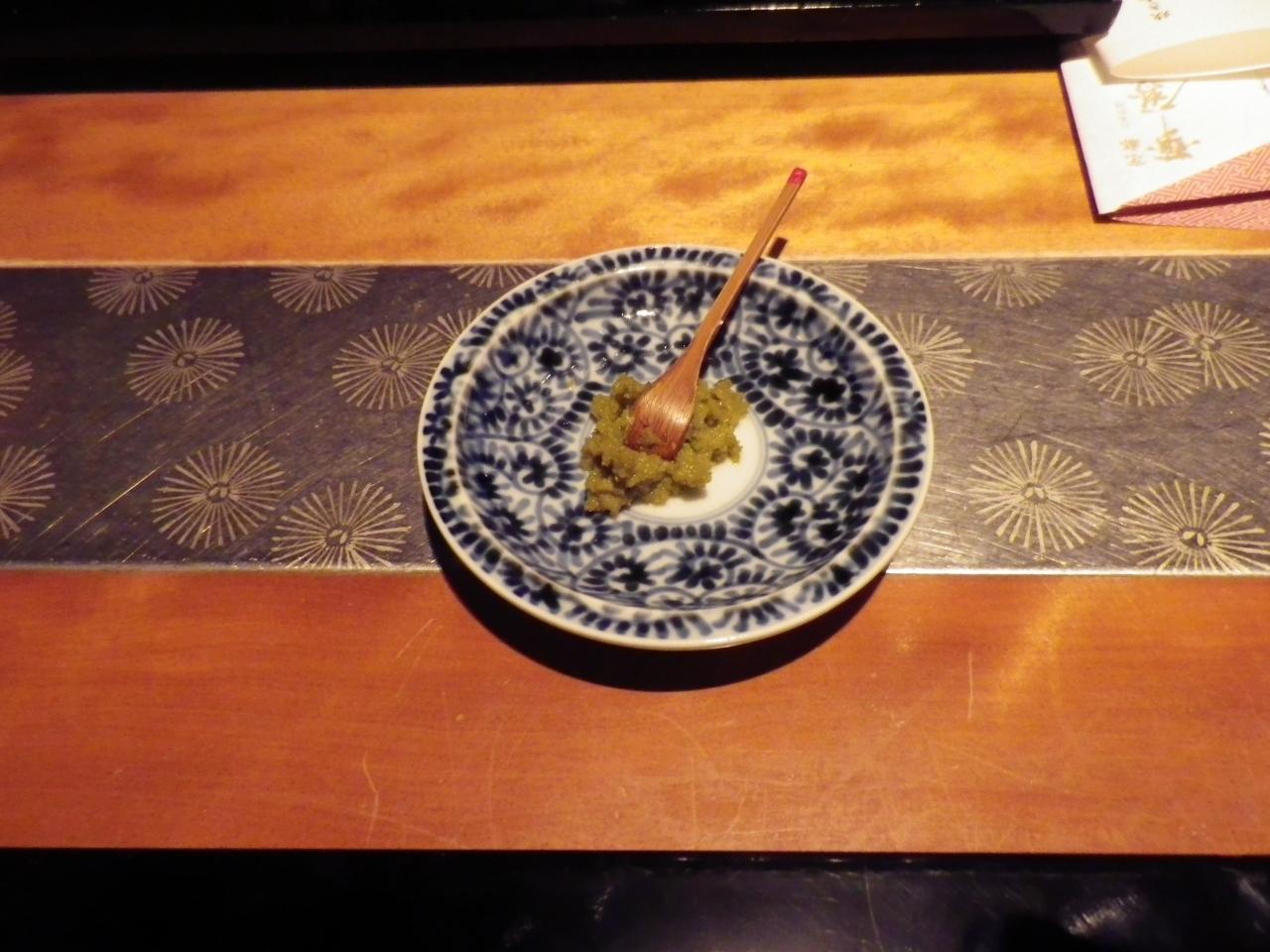 吸物、玉露仕立て若狭ぐじ新茶蒸し。