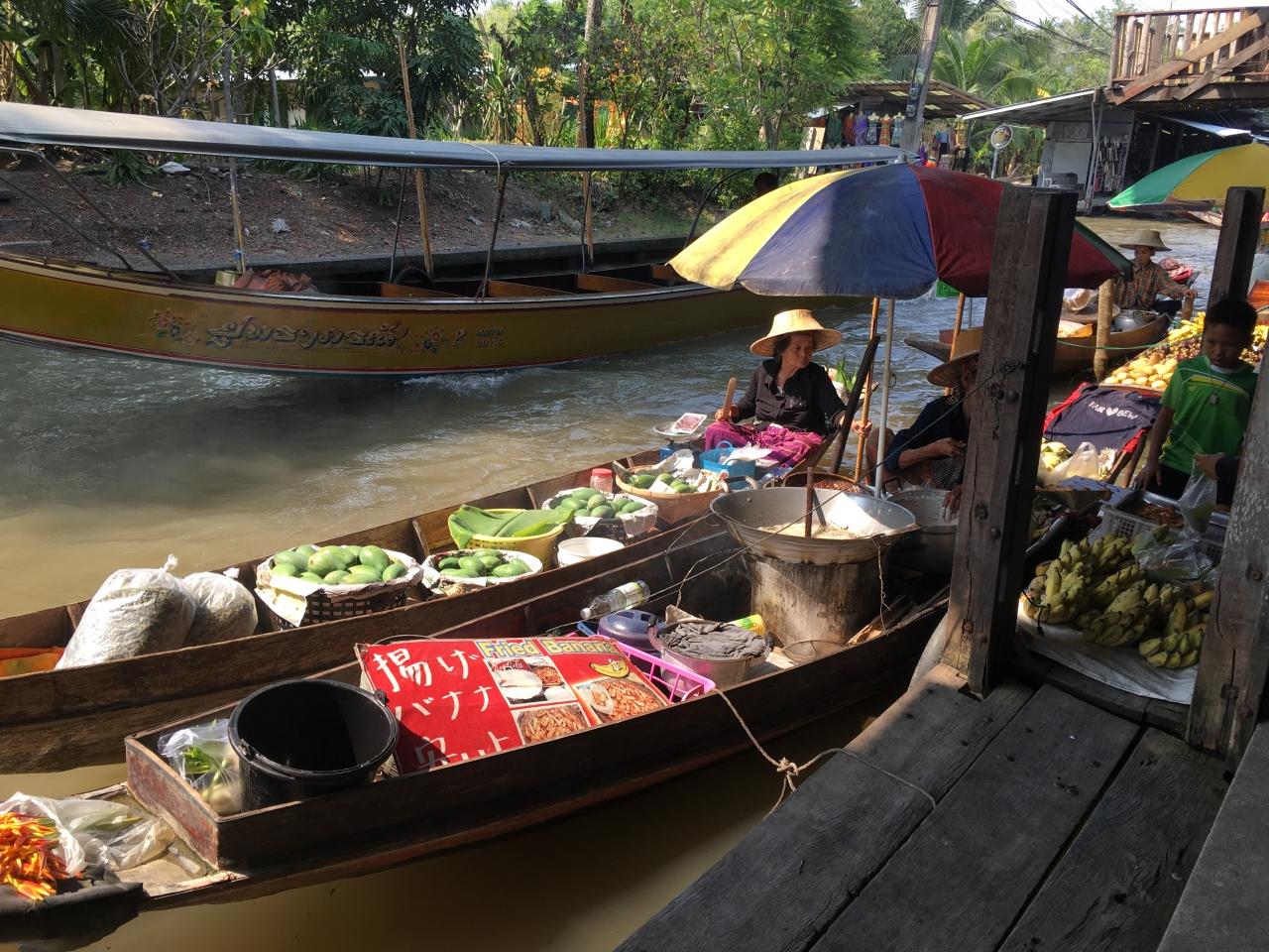 約20分か30分くらい?揺られて水路を進むと水上マーケットが近づいてきて、そこでいったん降ります。