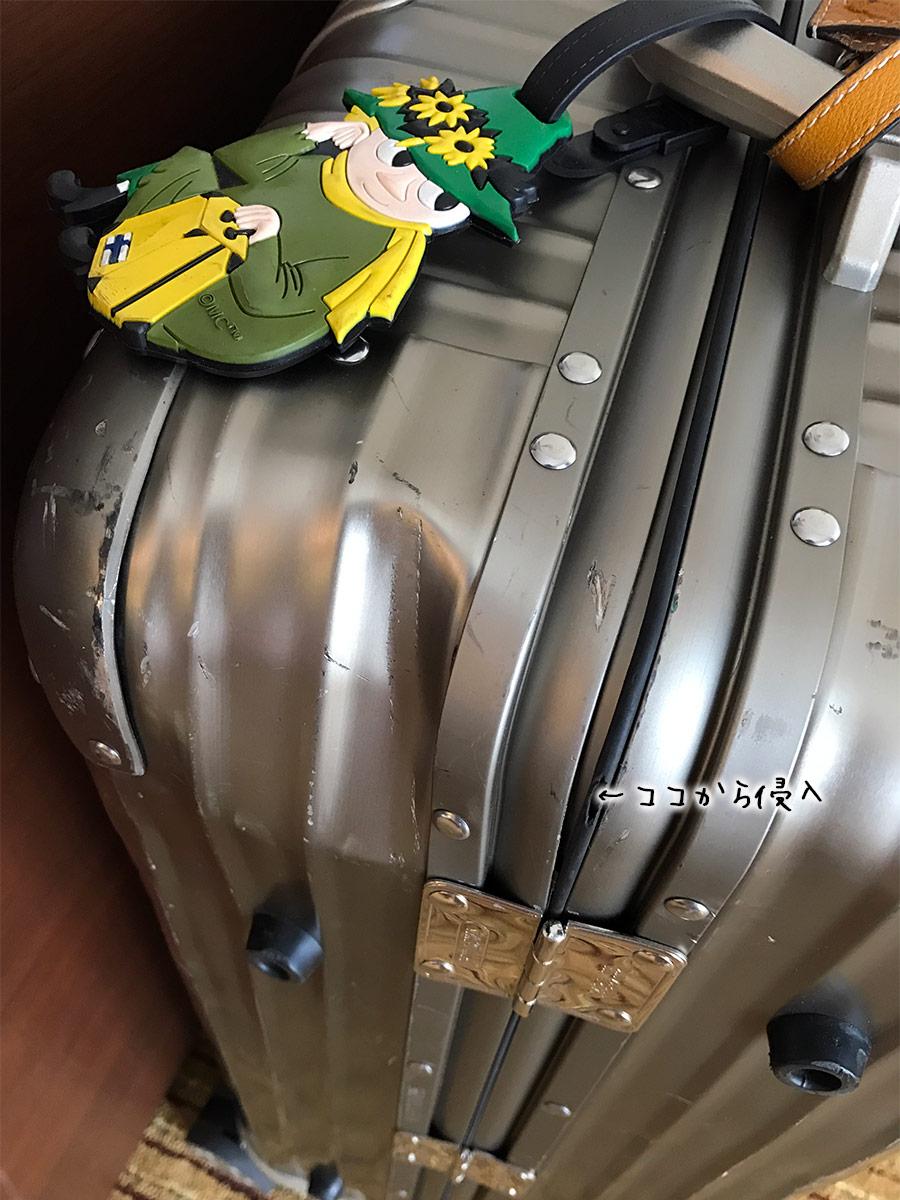 スーツケースを這う小さな茶色っぽい虫に目がとまりました。