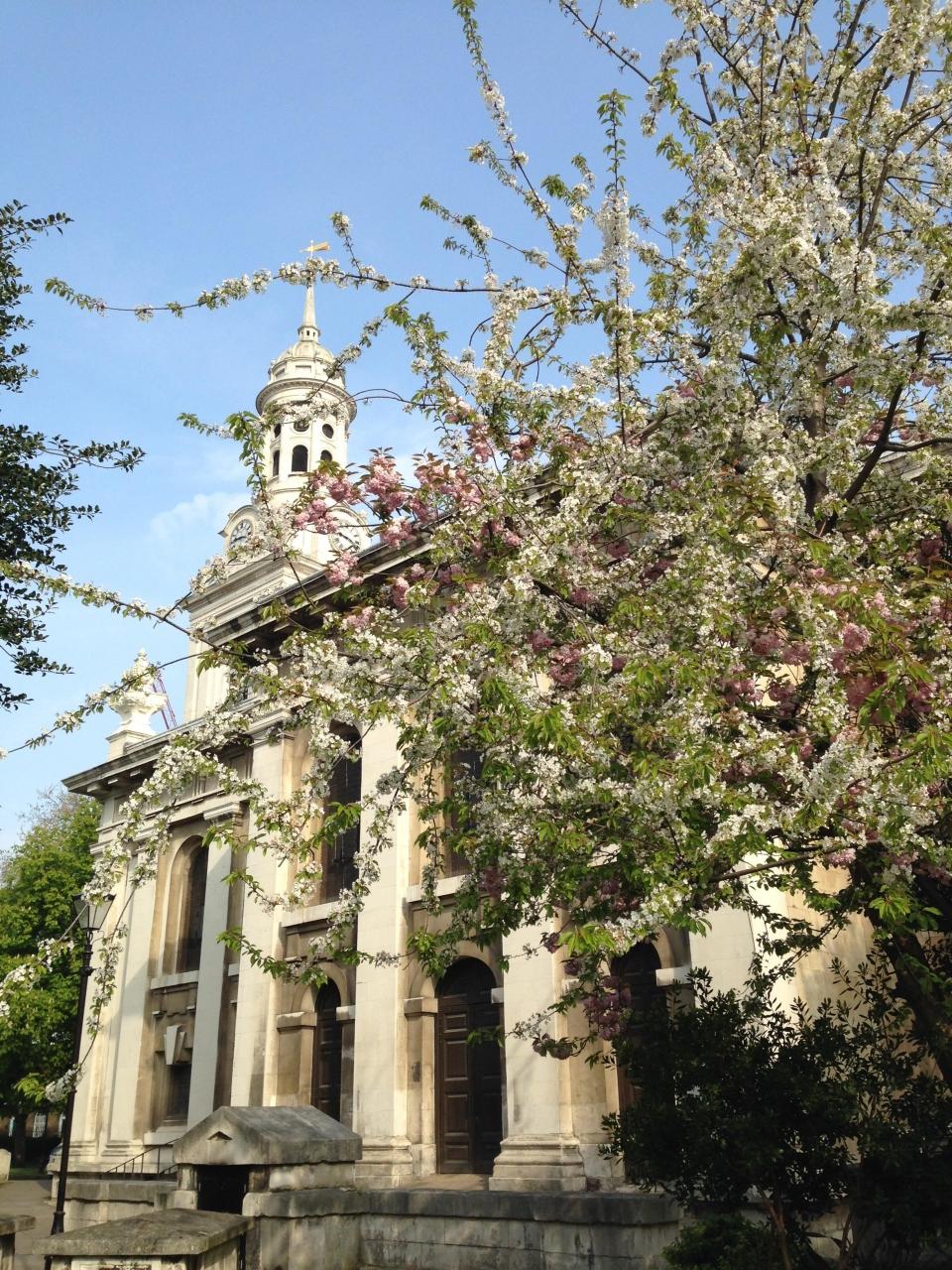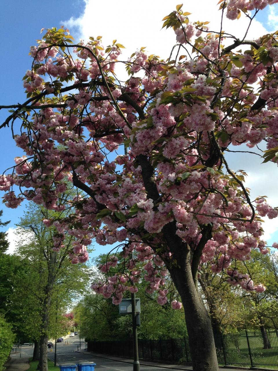 全3日間のドラマイベントの初日は、夕方からチケット持ってパスとかをもらいに行って、翌日からの激戦を生き抜くための会場の下見だけなので、昼すぎまではすることがなく、せっかくロンドンの東の外れのDLR(ゆりかもめ)沿線に泊まっているので、特に興味も知識もないけど、グリニッジに行ってみることにしました。桜のような花が満開でした。