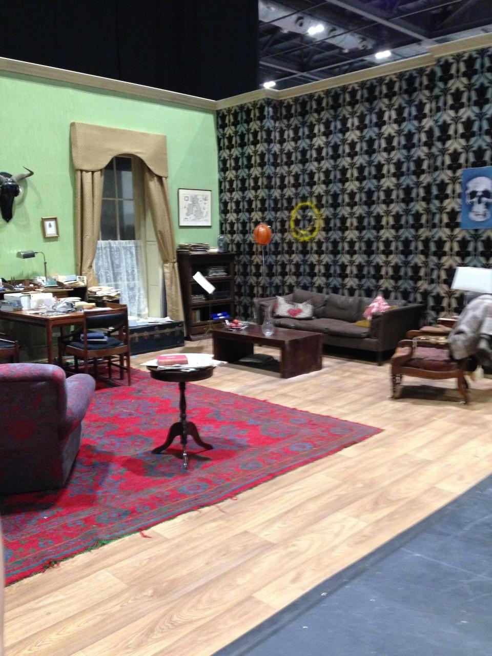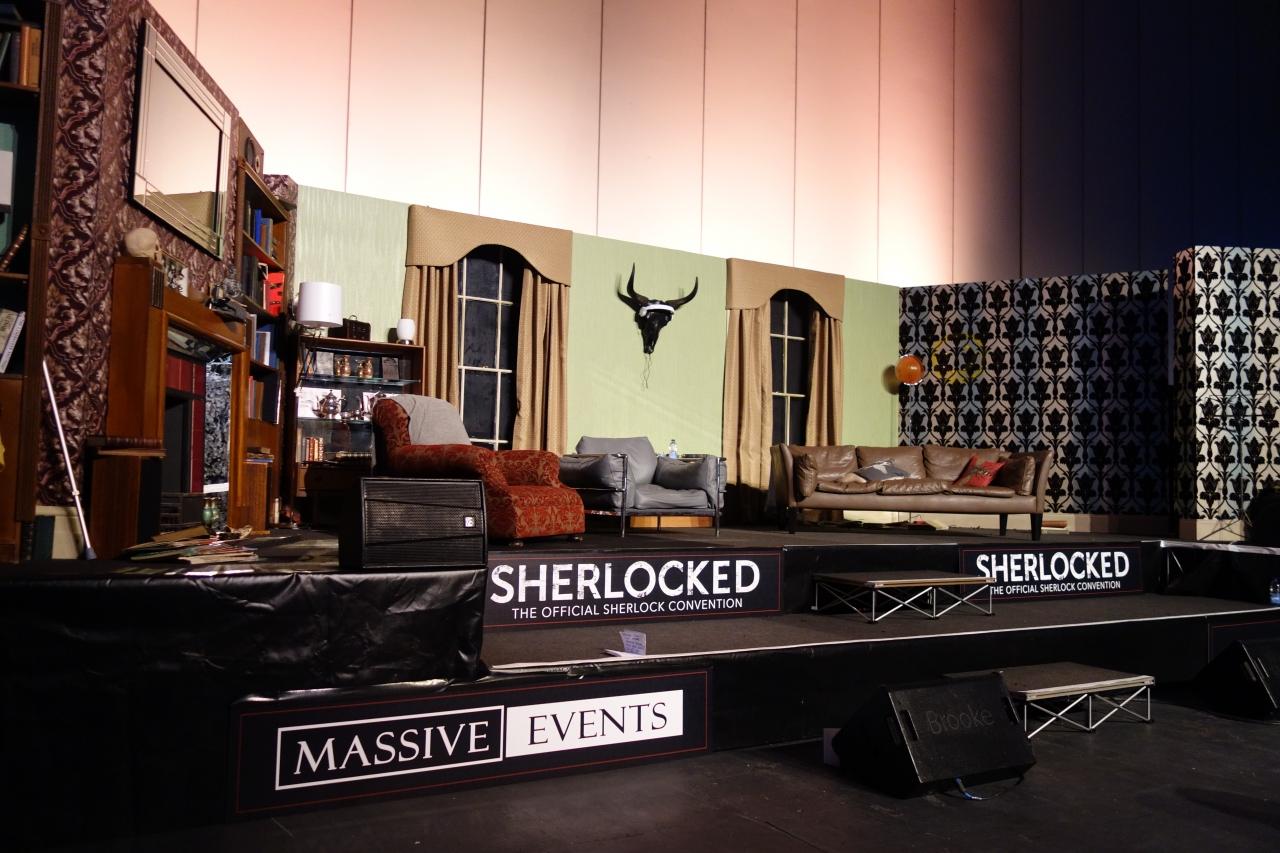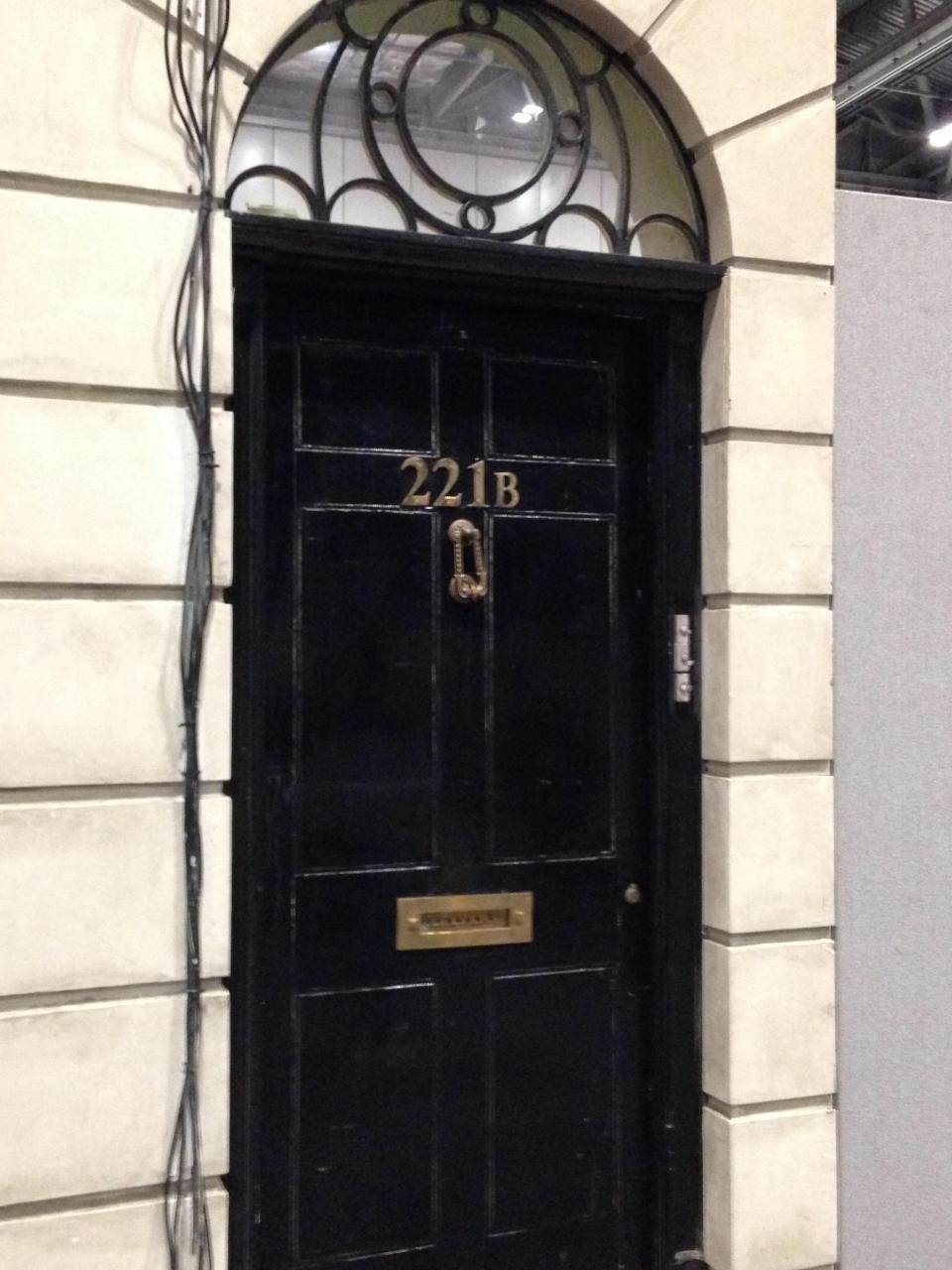 全3日間のファンイベントの、最後2日間はスタッフ、キャストが来場して、戦場のようになるので、会場に常設されているものをゆっくり撮影できるのは、初日だけです。これはシャーロックの顔写真と「The game is on」のセリフが書かれたバス。第1シーズン第1話で、シャーロックがハドソン夫人に「The game, Mrs Hudson, is on!」と言うシーン。