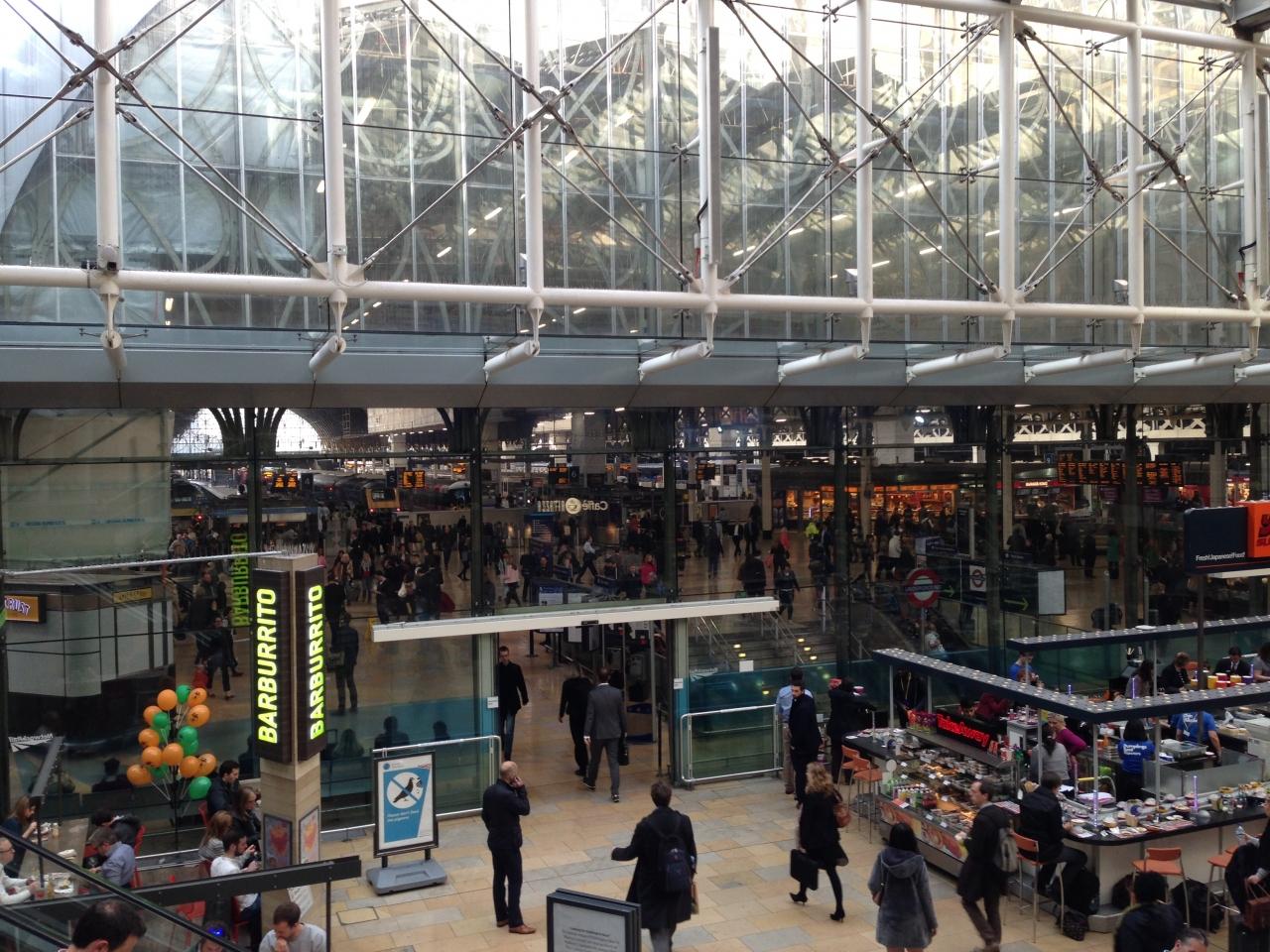 ホテル(ヒルトン)に隣接しているパディントン駅。回転寿司とかあります。