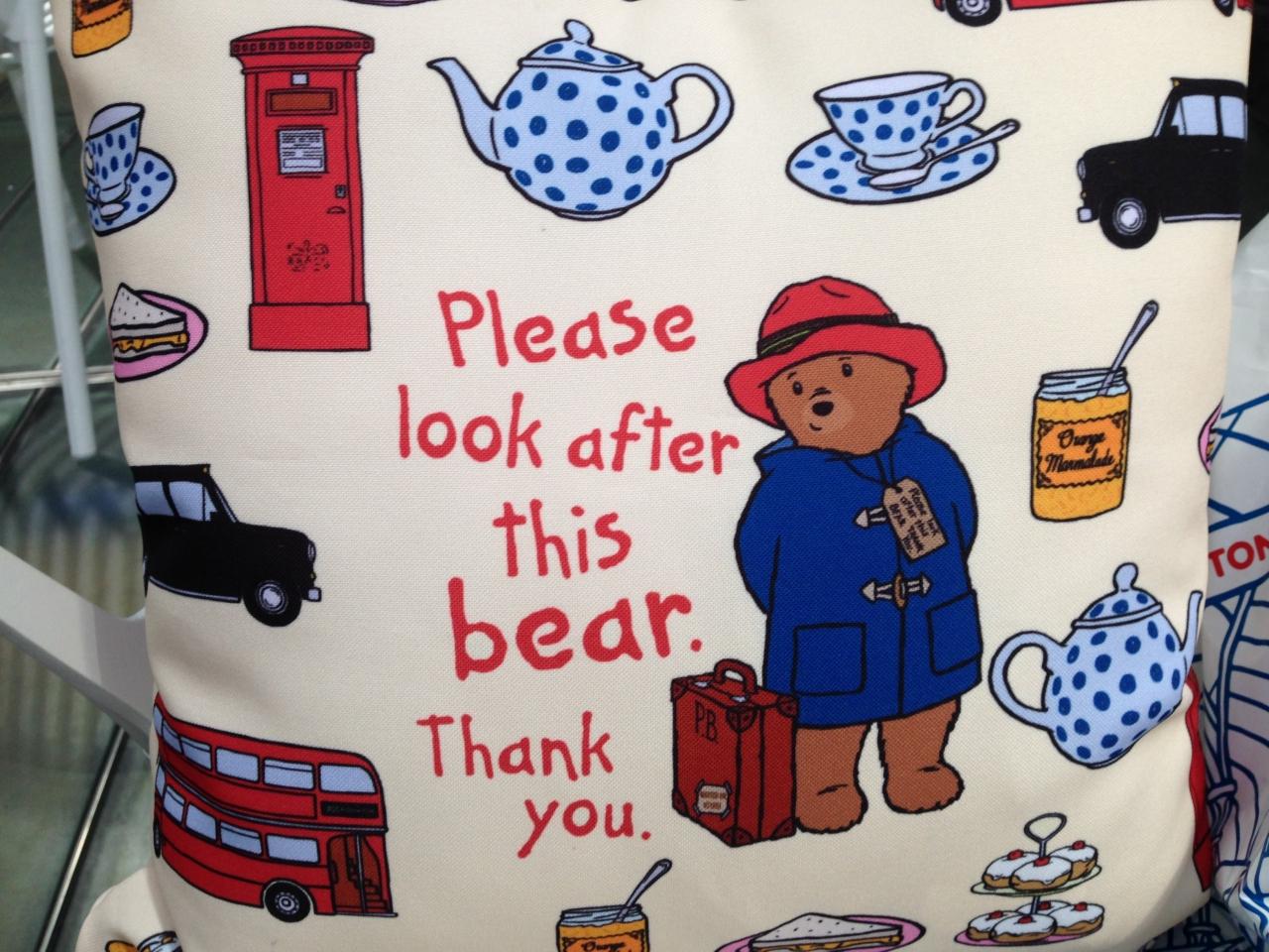 パディントン駅の熊のパディントンショップで買った、クッション。