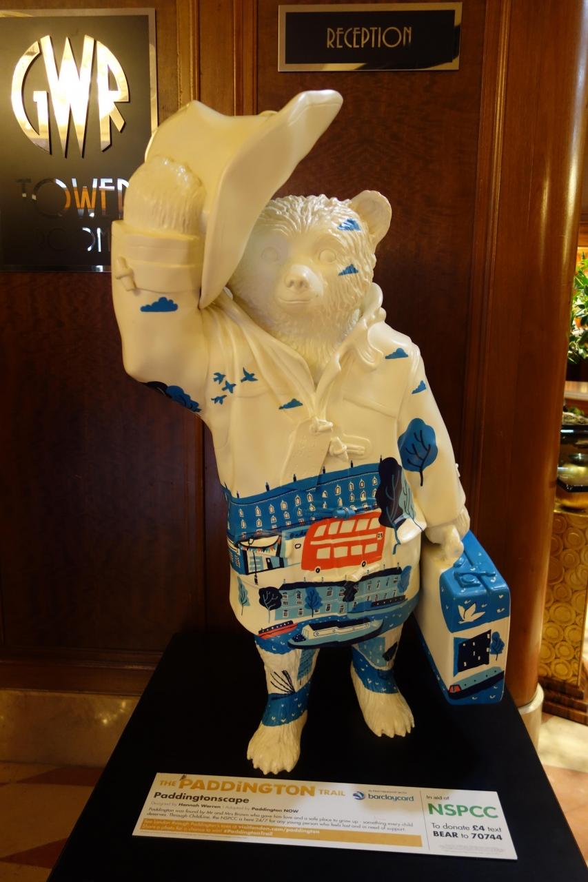 こちらはパディントン駅に隣接するヒルトン・パディントンのロビーにいる熊のパディントン。