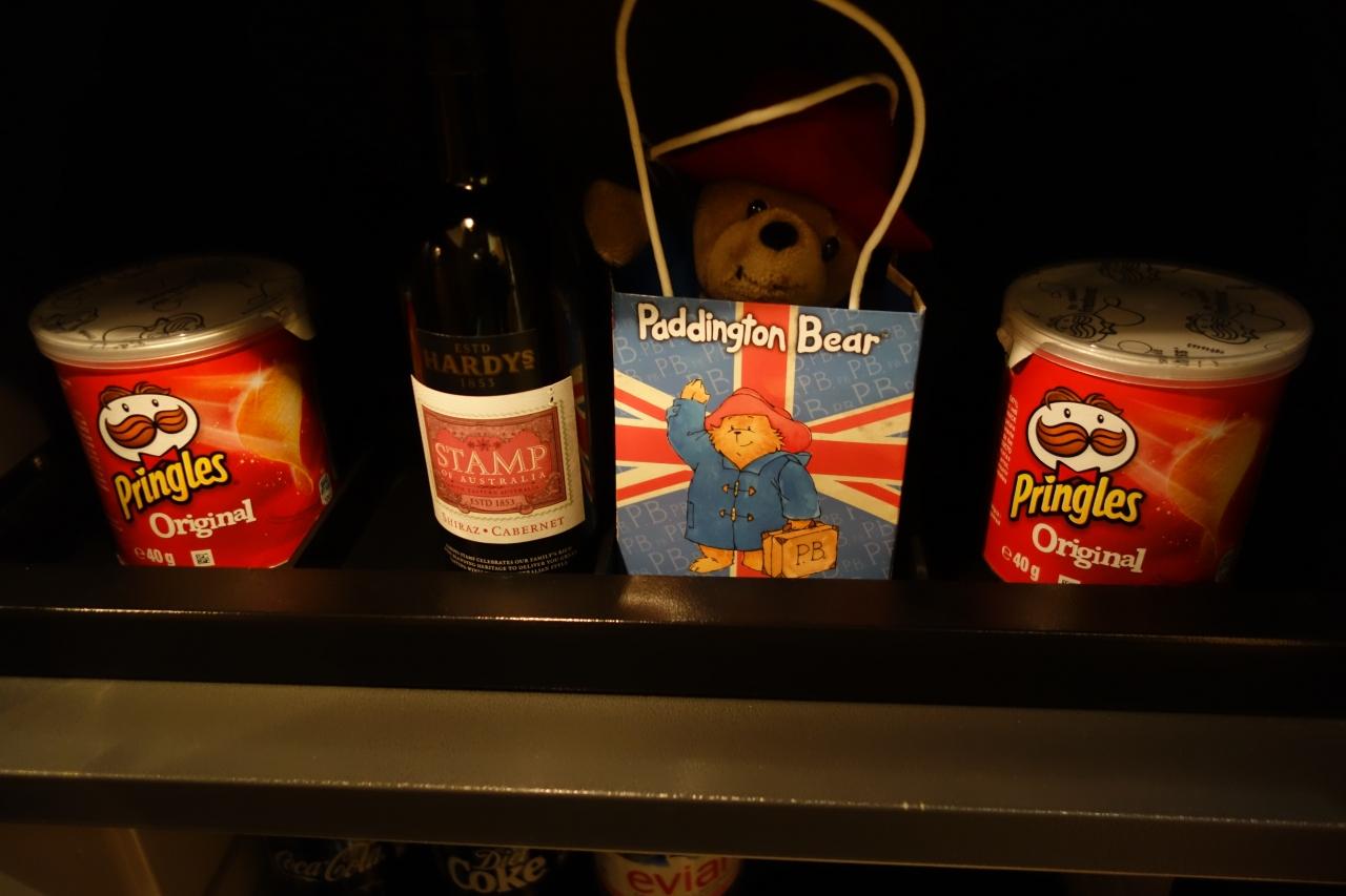 ヒルトンのお部屋の冷蔵庫にも、熊のパディントンが。
