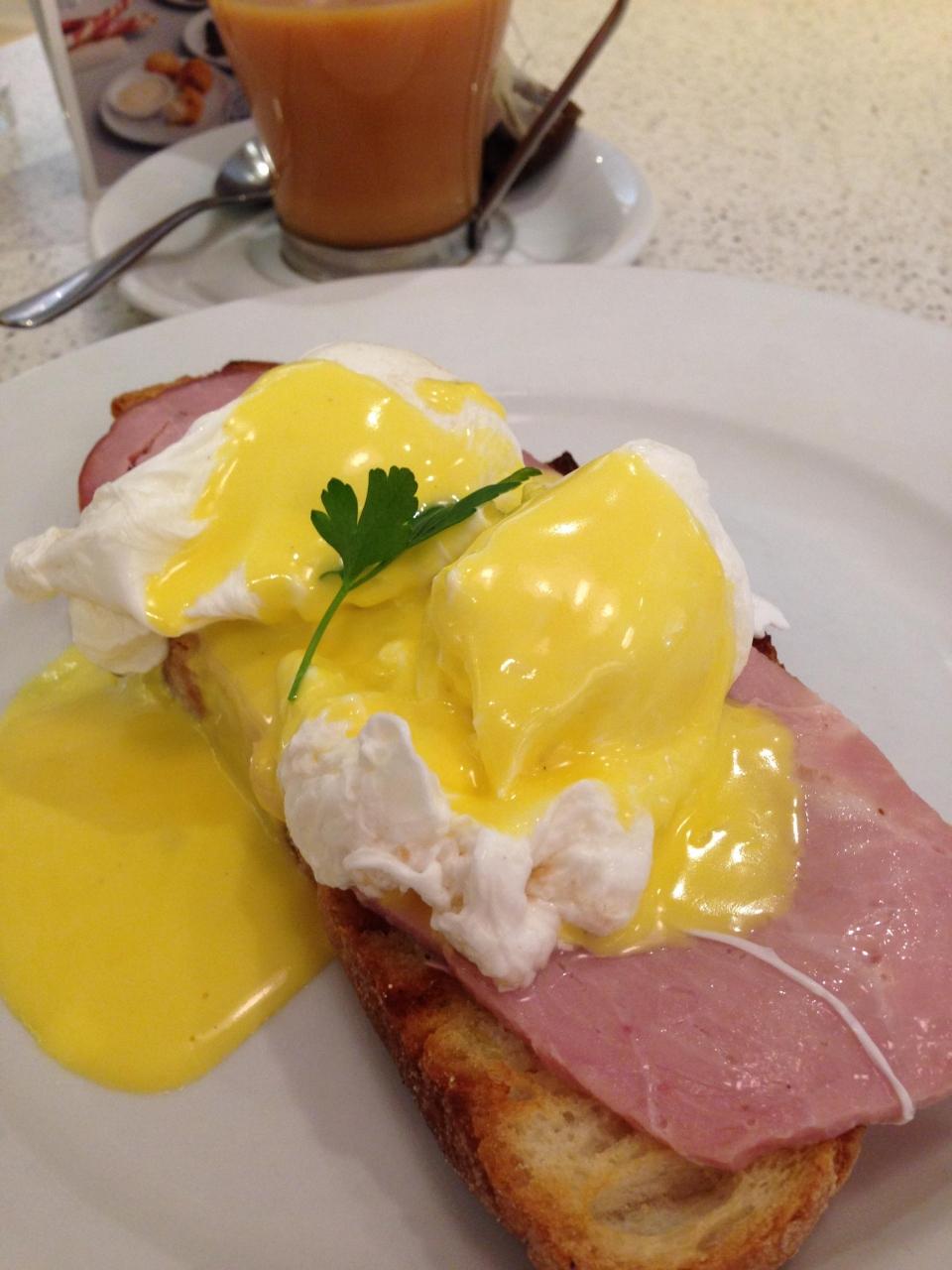 帰りの便を待つヒースロー空港で、朝ごはん。ベネディクトに会った後だけに、エッグ・ベネディクト。