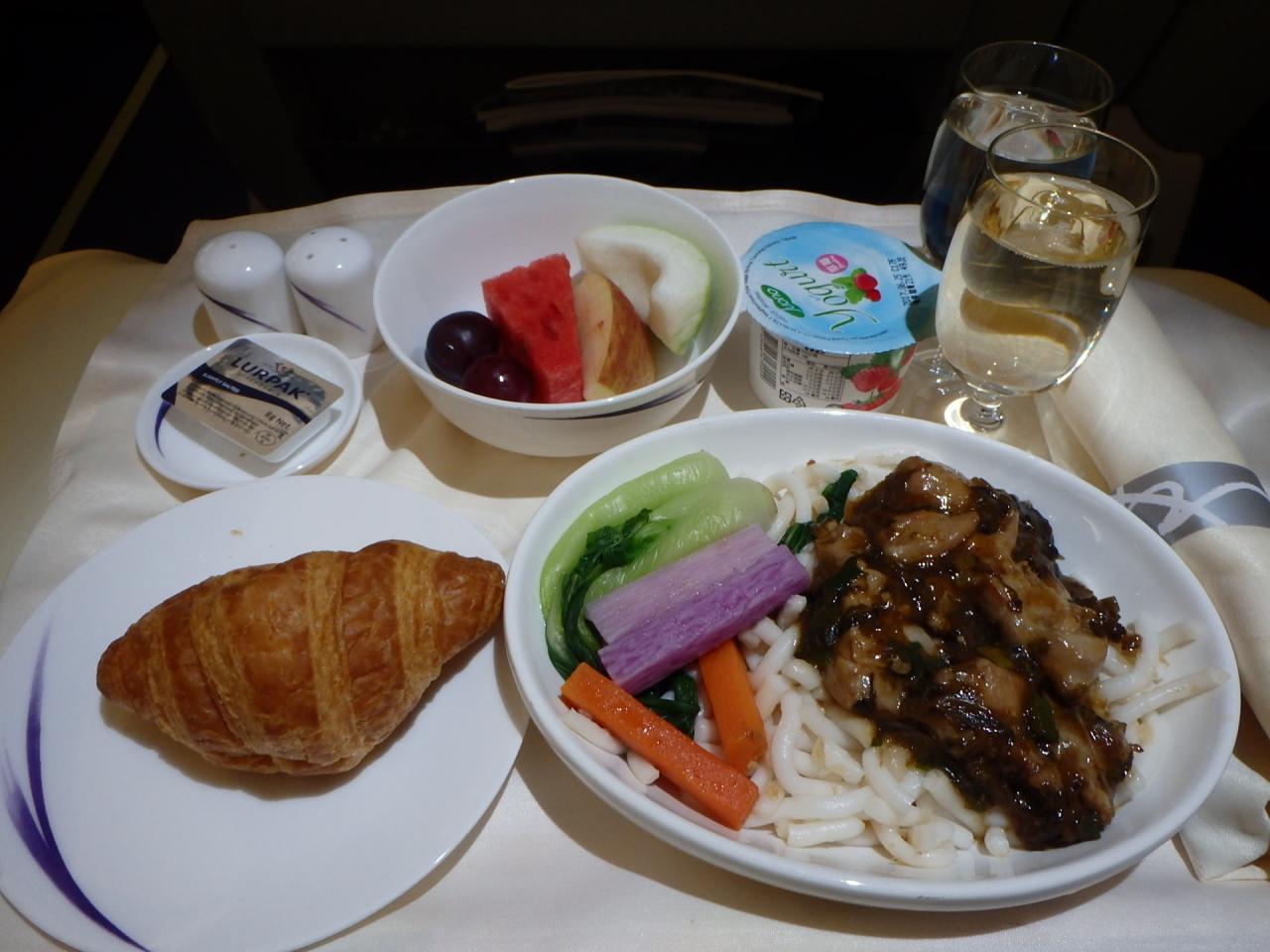 機内食はハッカスタイルのヌードルをチョイス
