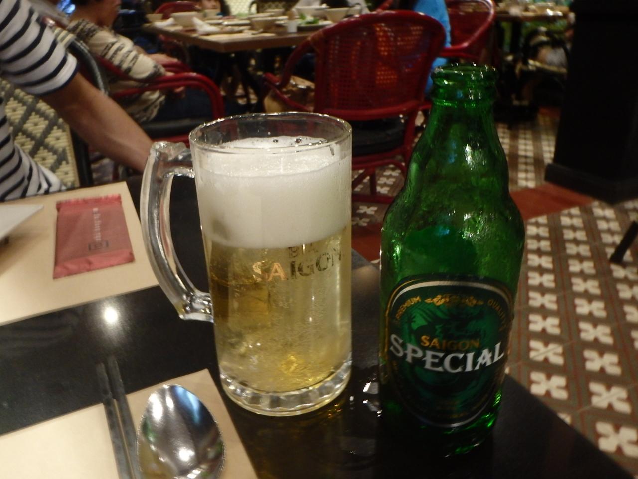 sさんは遅れるので、先に初めておいてとのことで、Tさんと無事合流して、まずはサイゴンビールからスタート♪