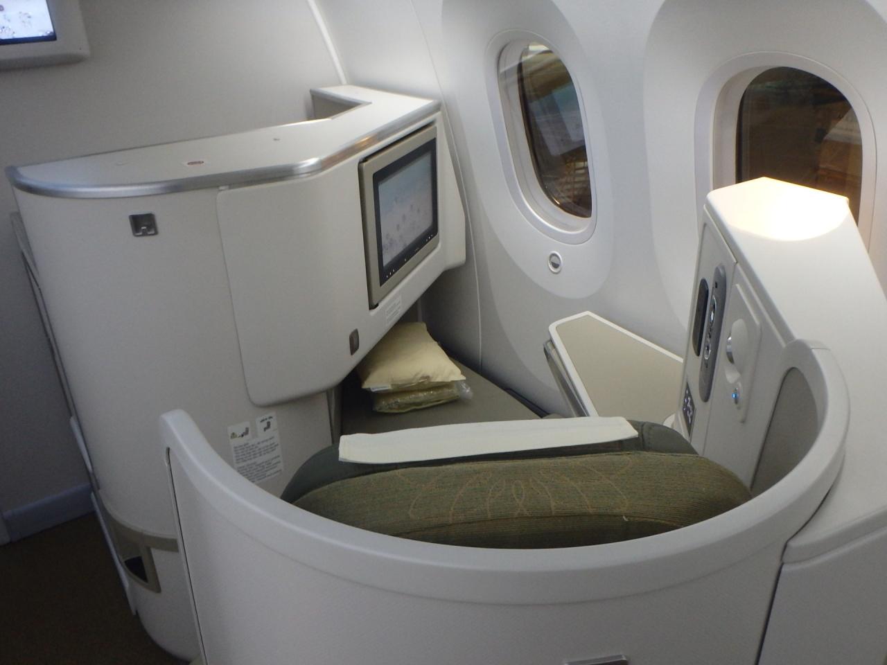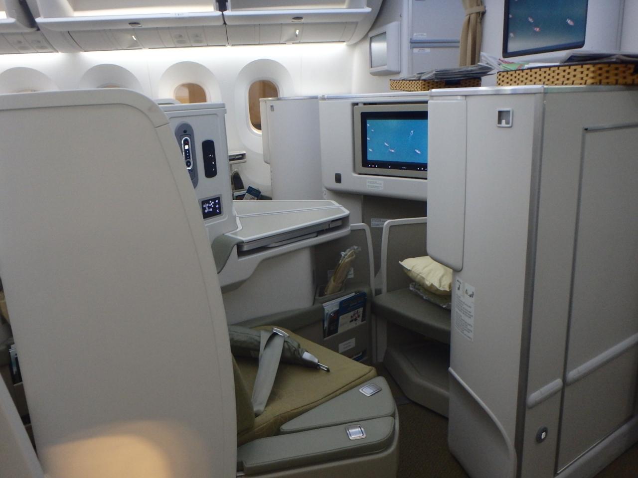 ビジネスクラスは1-2-1のヘリンボーンタイプで