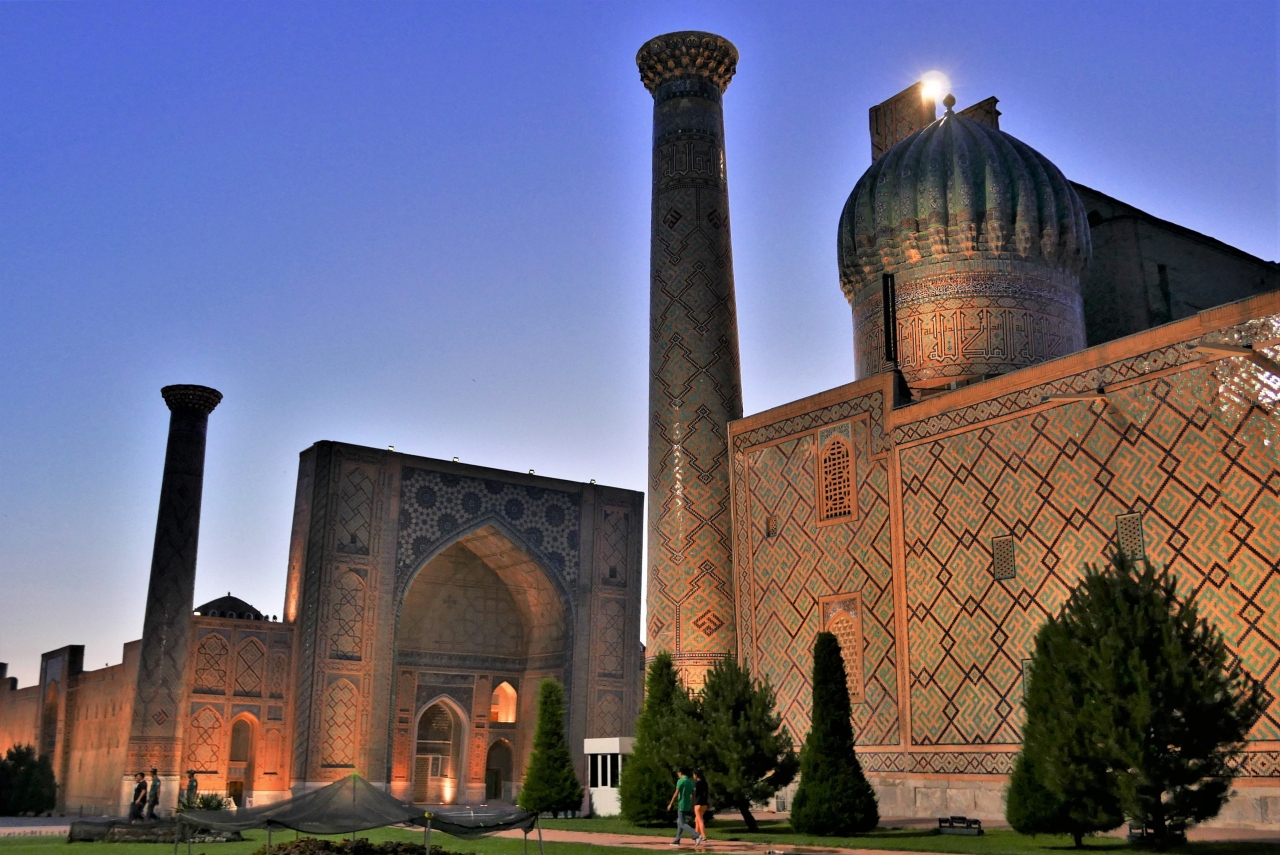 民族舞踊を見ながらのディナーの後、レギスタン広場のライトアップを鑑賞。