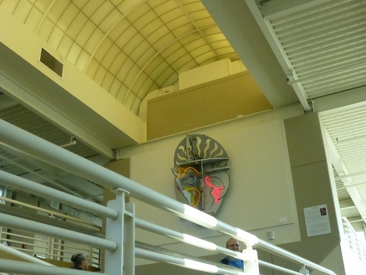 エスカレーターを上がってきた所にあって、開放的なラウンジなので、下の様子がよく見えます。