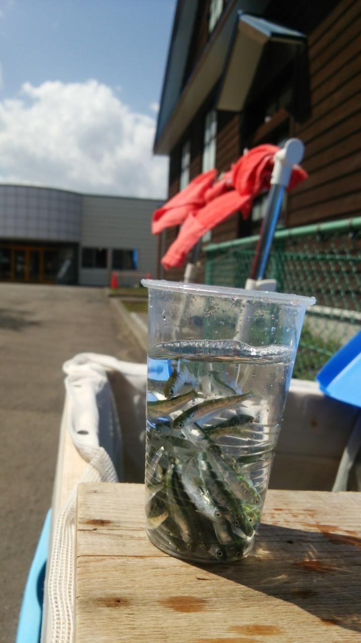 7月時点でのさけます情報館のFBの写真を見ると、「放流は一人三匹で」みたいな張り紙があったので、こんだけコップ一杯にすくえて放流できるのもこの時期だけだったのですね。