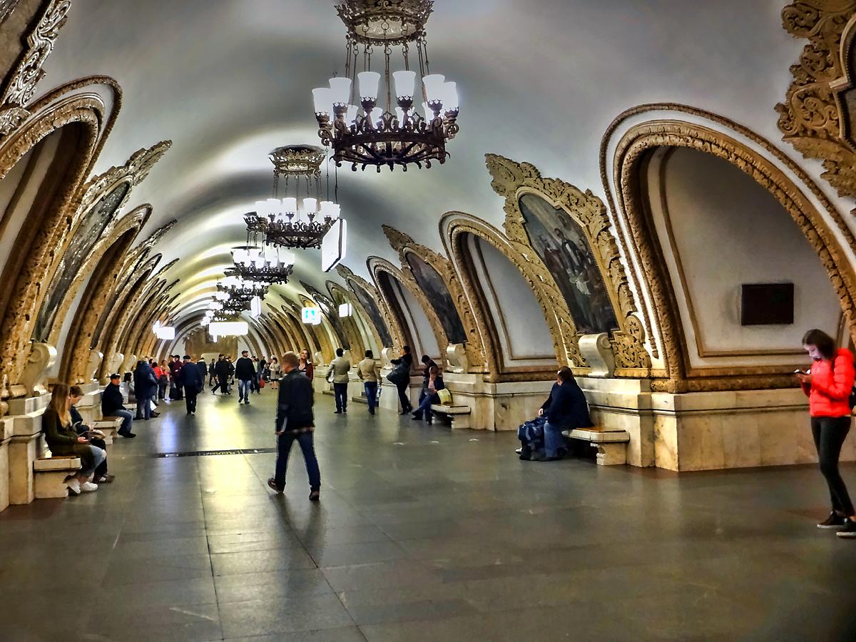 装飾の豪華さから地下宮殿ともいわれるモスクワの地下鉄ホーム。