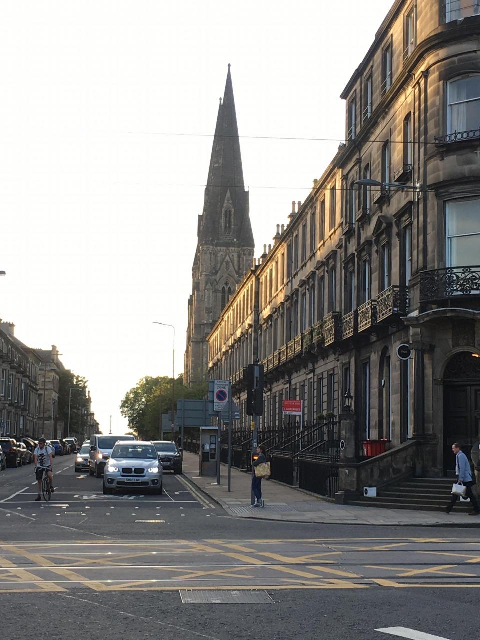 黒っぽく煤けた感じのサンドストーンの町並み。落ち着いていて素敵です。治安がいいのも良いです。