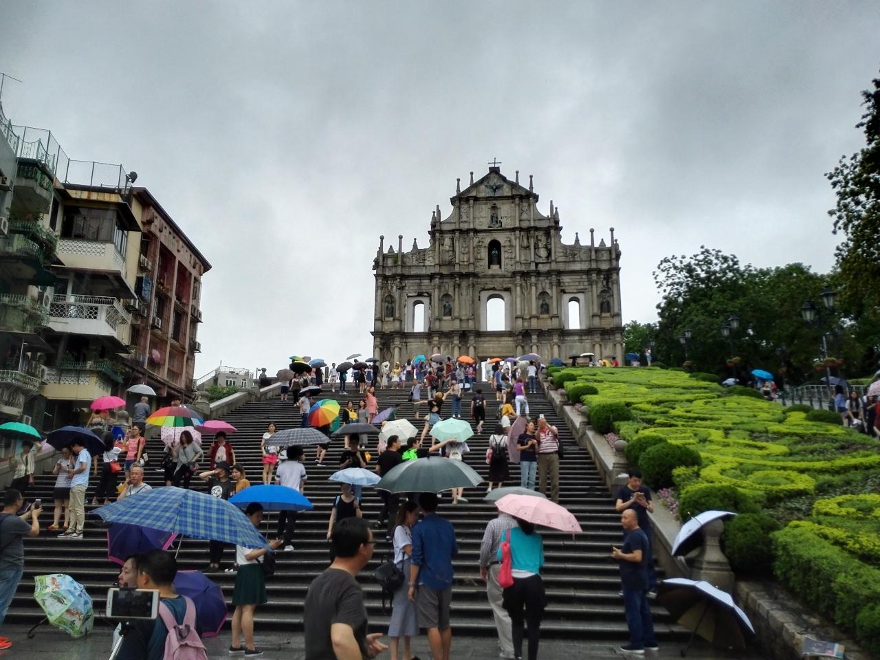 生憎の雨模様だが流石マカオ一の観光名所。凄い人だかりだ。