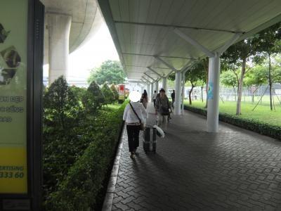 入国審査を通過し、スーツケースを受け取った後、税関を通り、いったんターミナルビルの外へ出て、Domestic Terminalの表示に従って進みました。