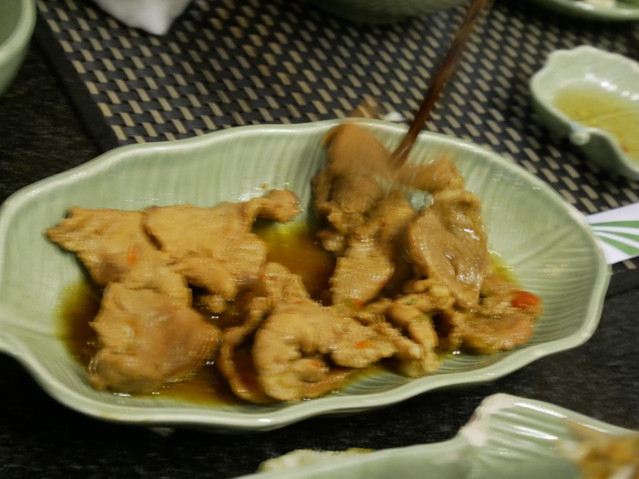 豚肉の煮物。こんな固い肉久しぶりっていう感じ。