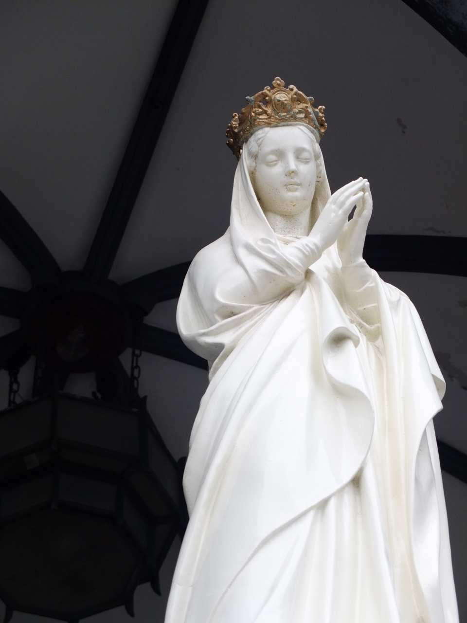 大聖堂の階段を登りきると迎えてくれるマリアさま。天の母、サンタマリア。