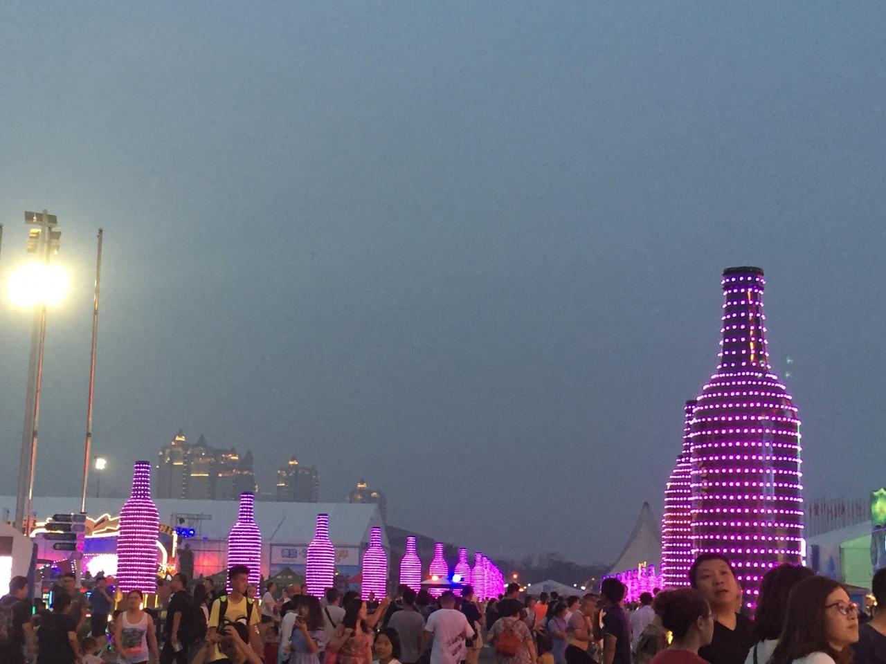 青島ビールブース出ると薄暗くなってて、いよいよ夜の雰囲気に!
