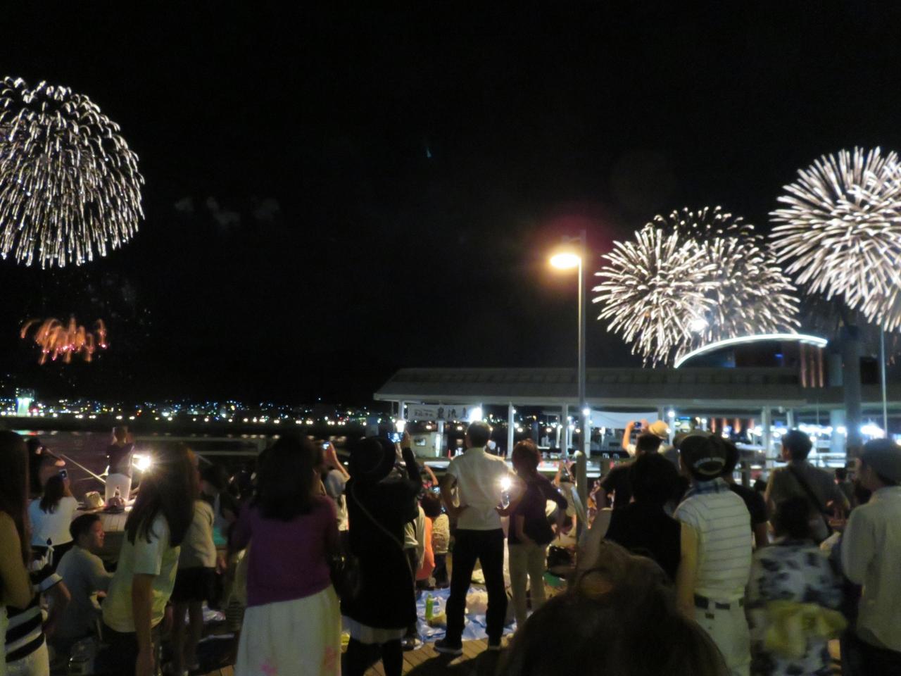 ここは、唐戸港。門司港行きの船の発着場近辺。無料で花火見物できる。