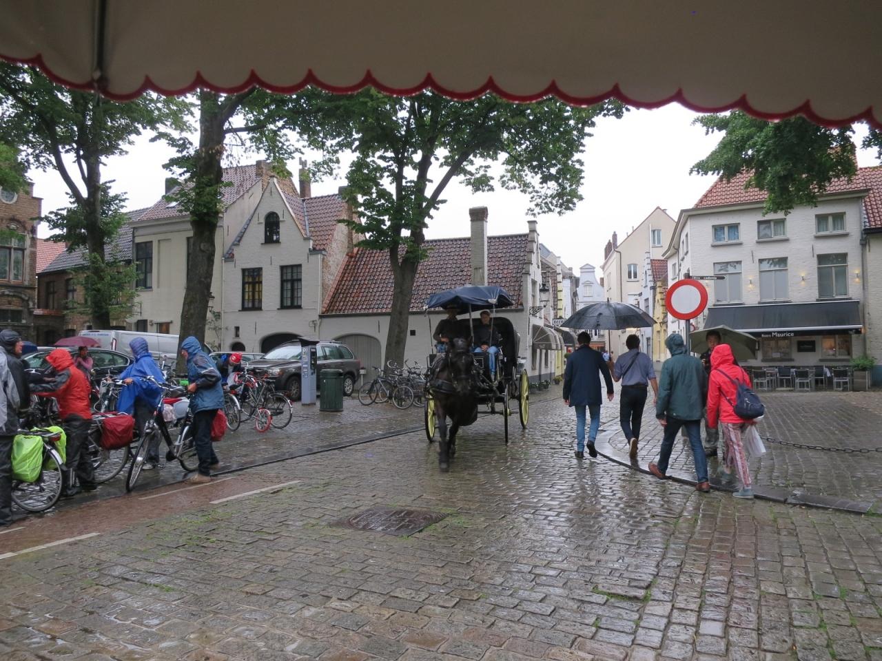 レストランで雨宿りしてた人が広場に出てきたんでしょうね。マルクト広場 (ブルージュ) 広場・公園